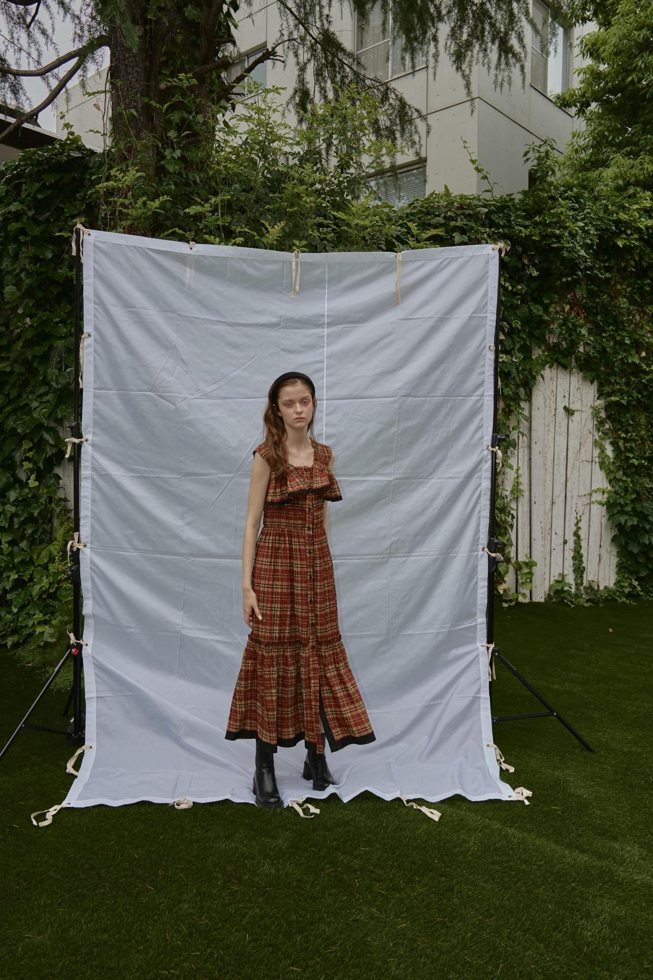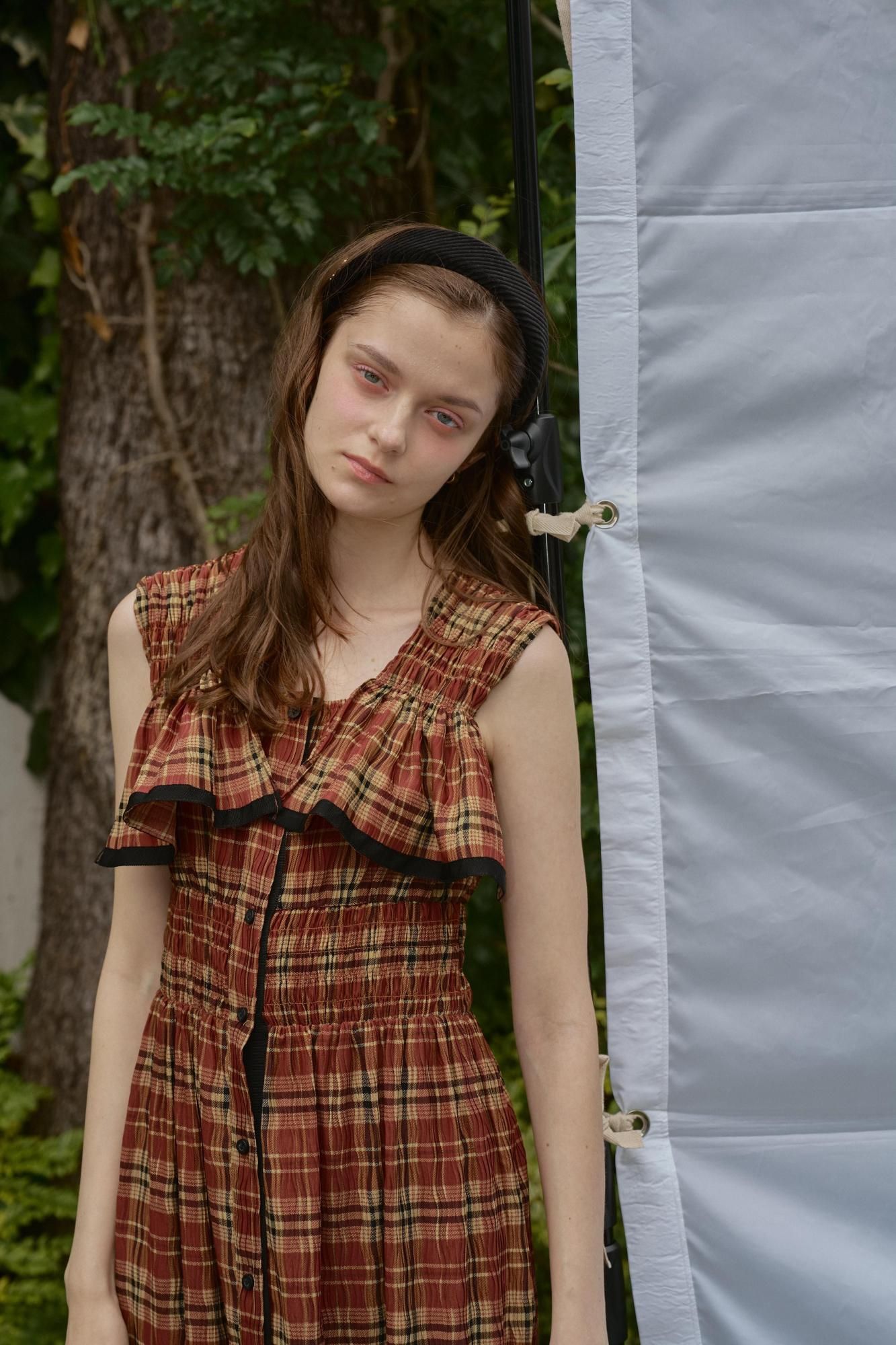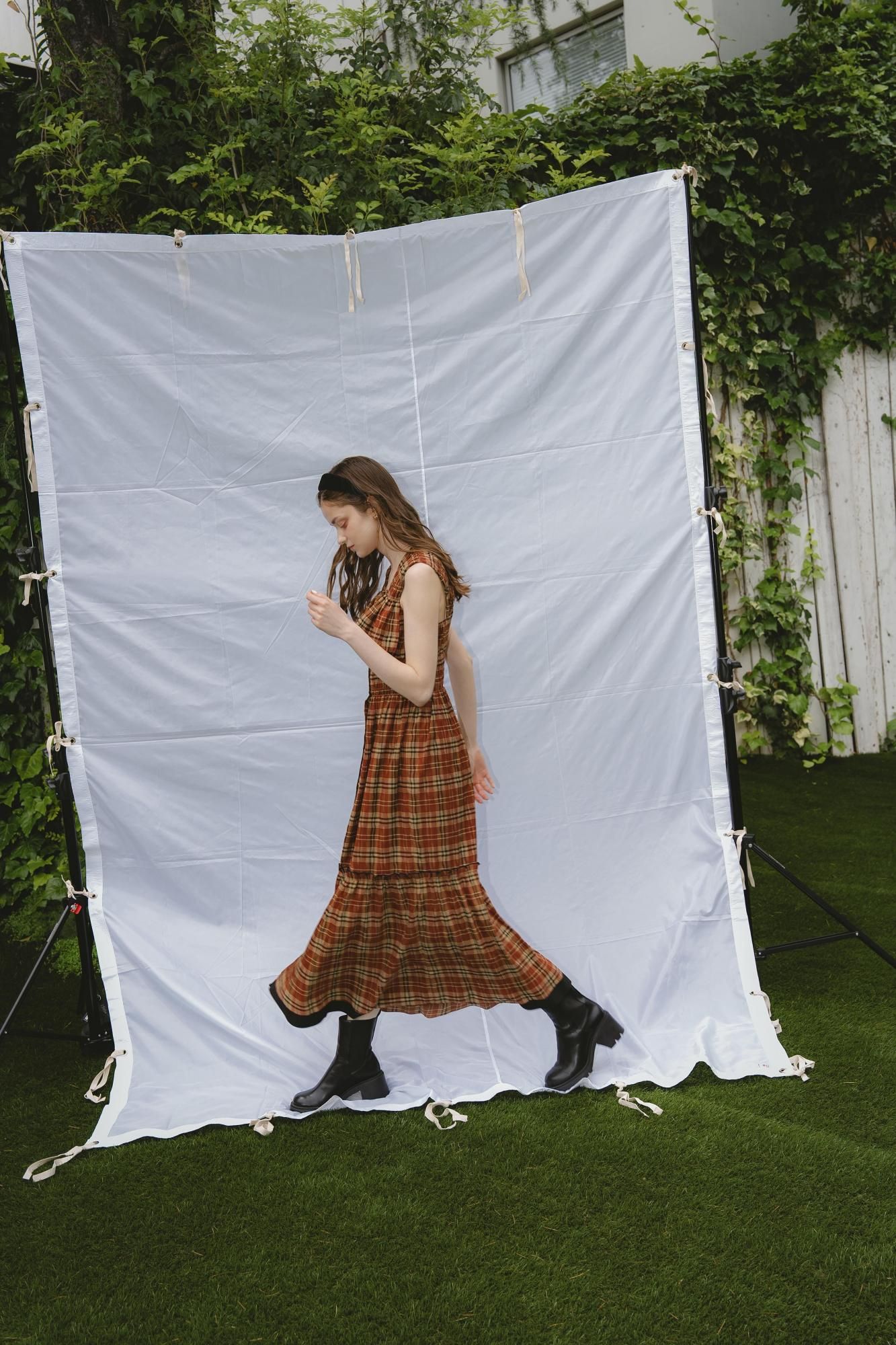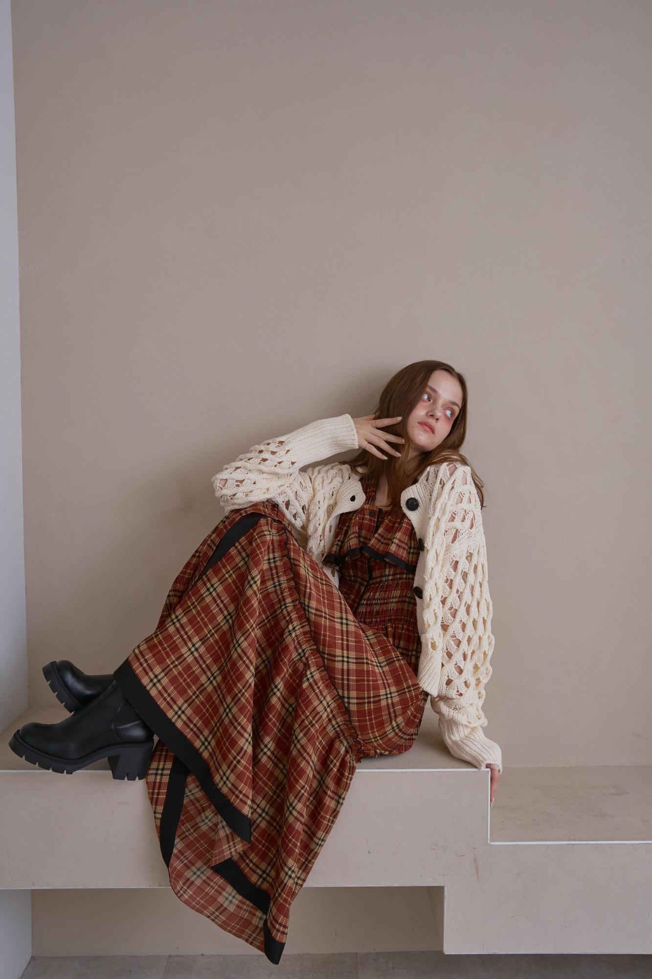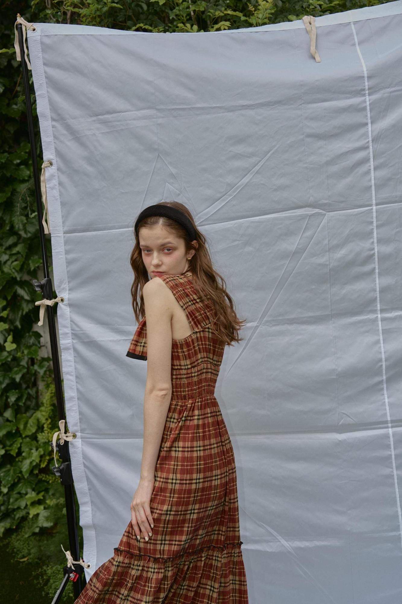 秋らしいカラーリングのチェック柄がかわいいプリーツ素材のワンピース。