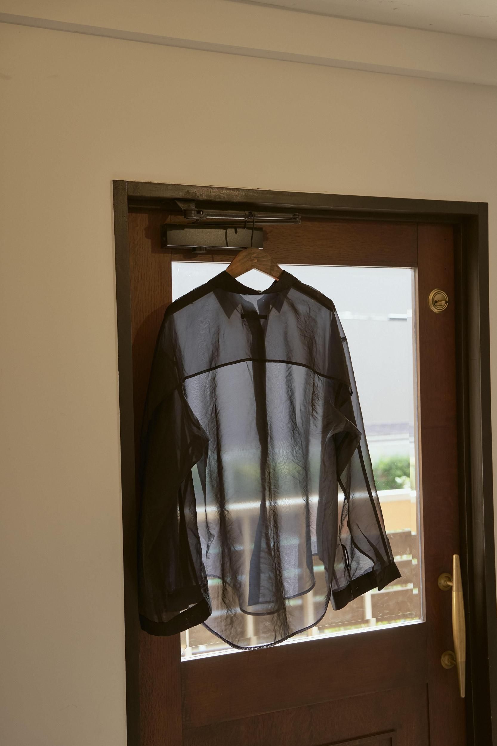袖口の釦を留めずにワイドスリーブで着ていただくのもおすすめです。