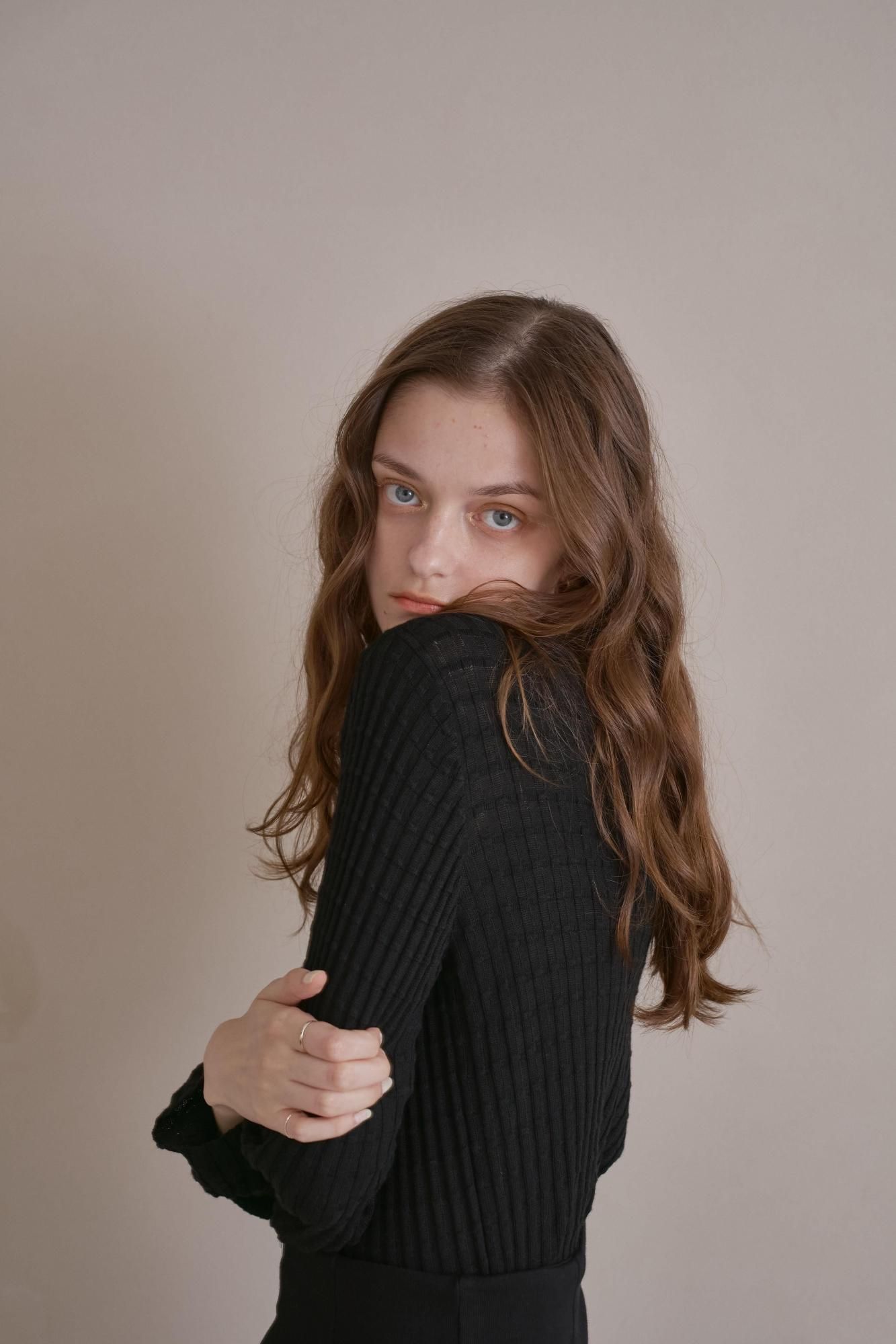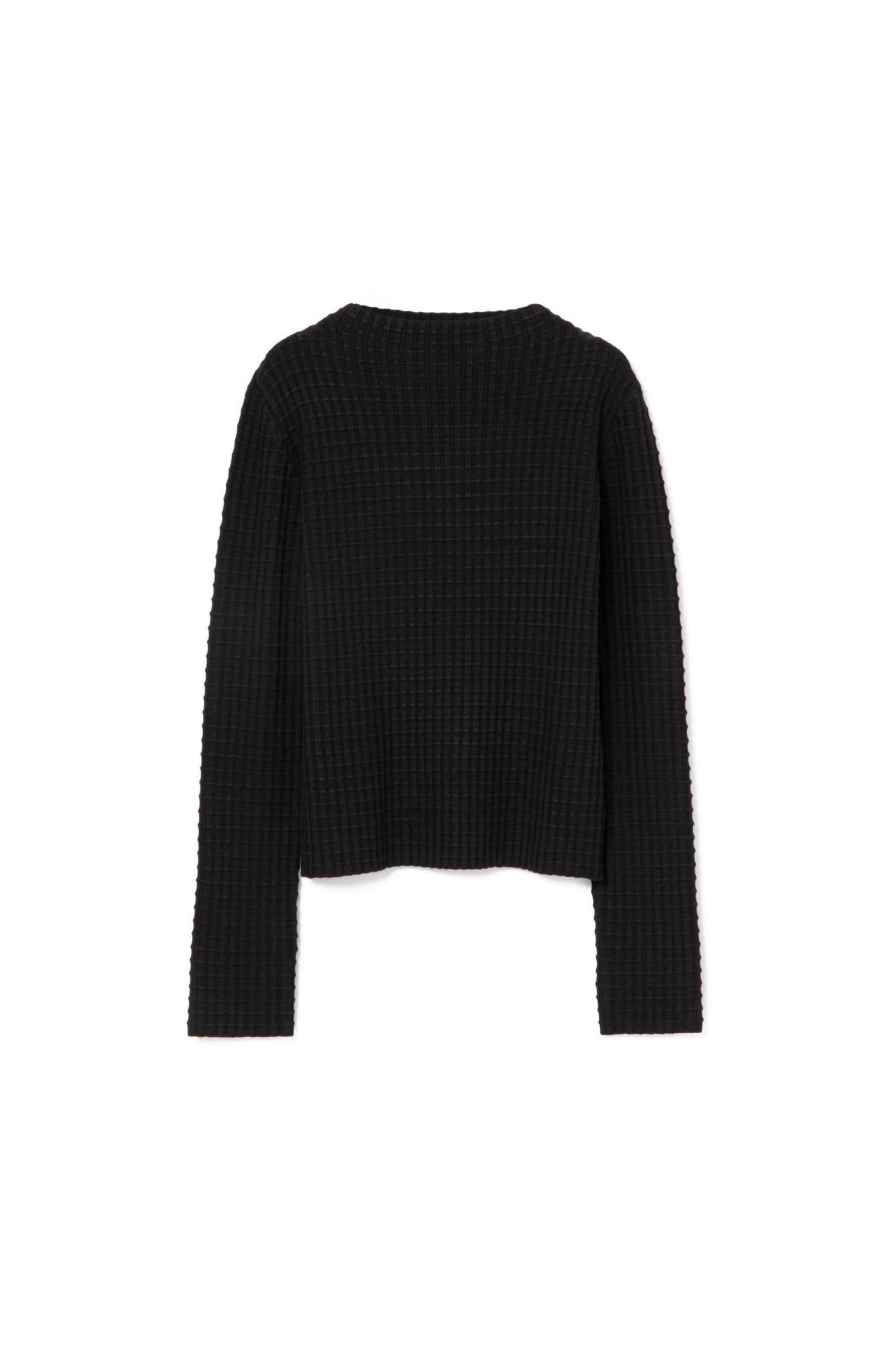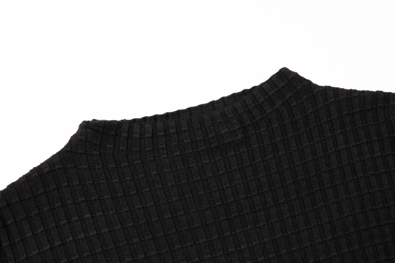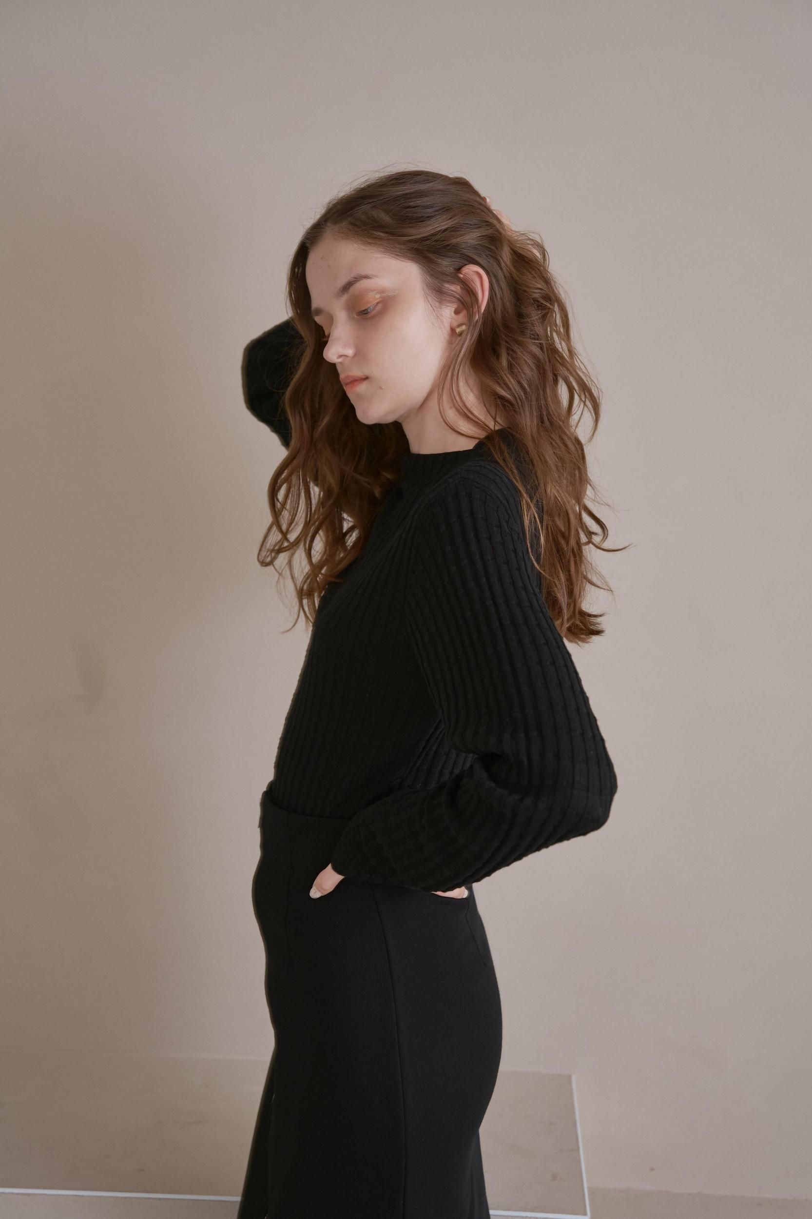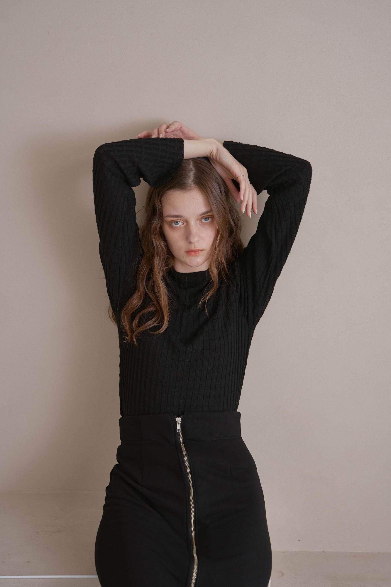 ポコポコしたタック編みを組み合わせたリブニットトップス。