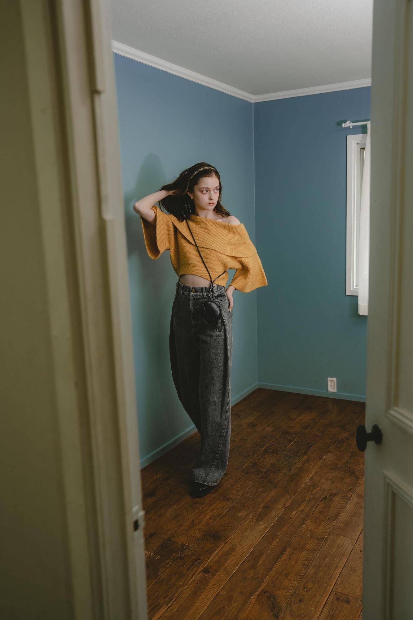広めのクルーネックとしても、肩を落としてオフショルとしても着ていただけます。