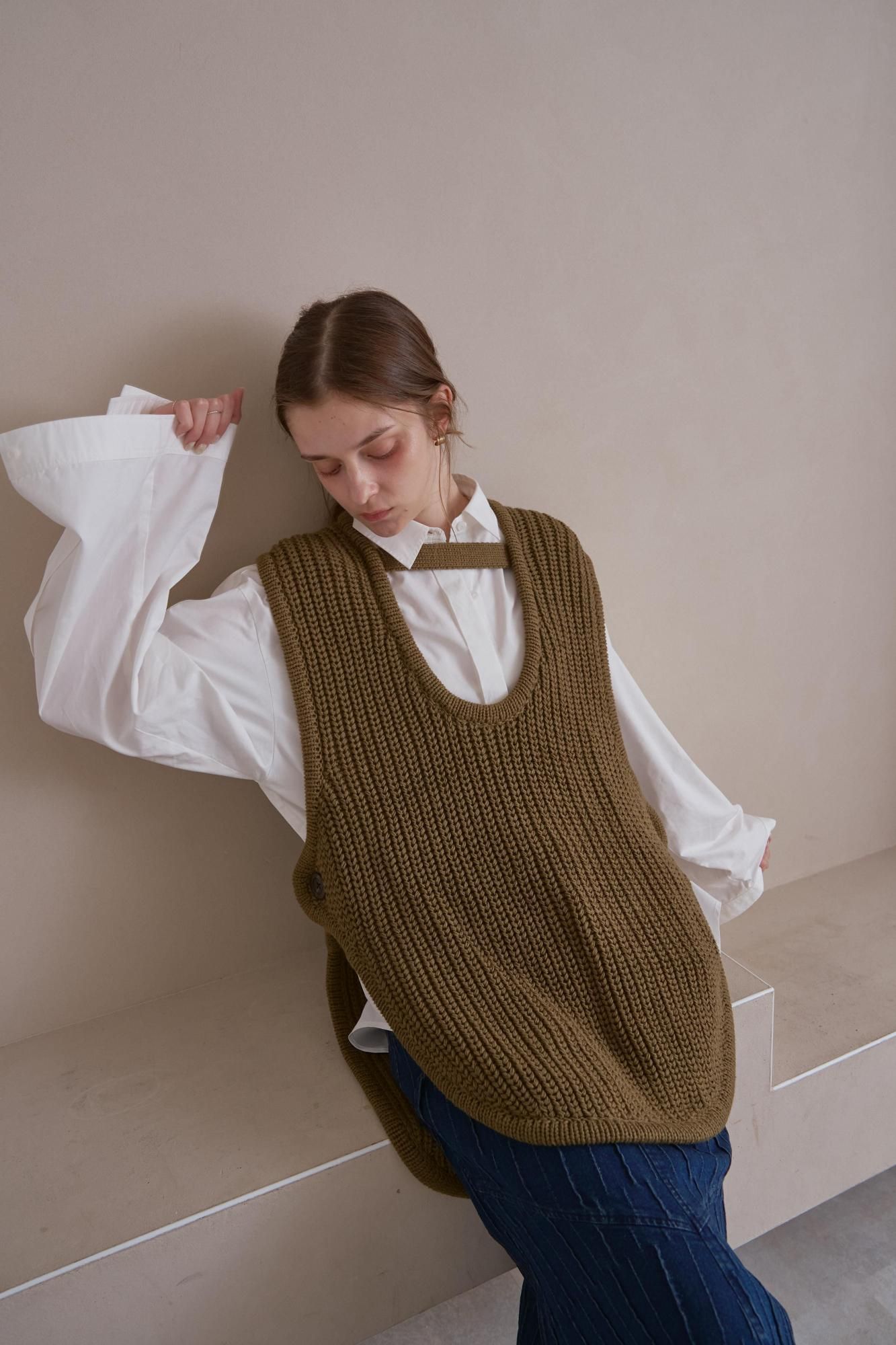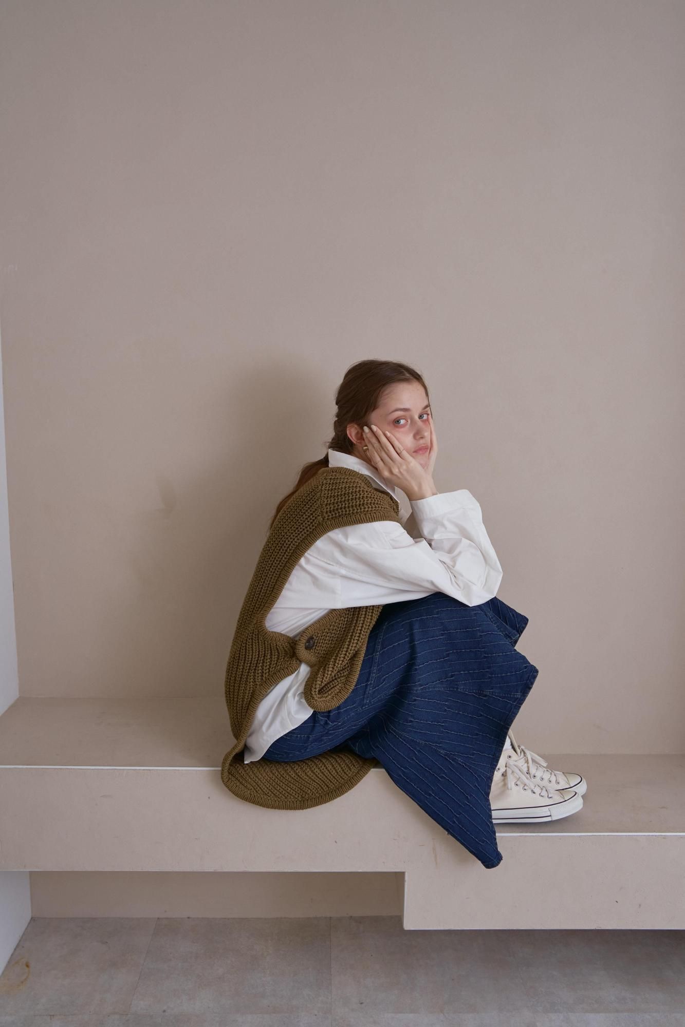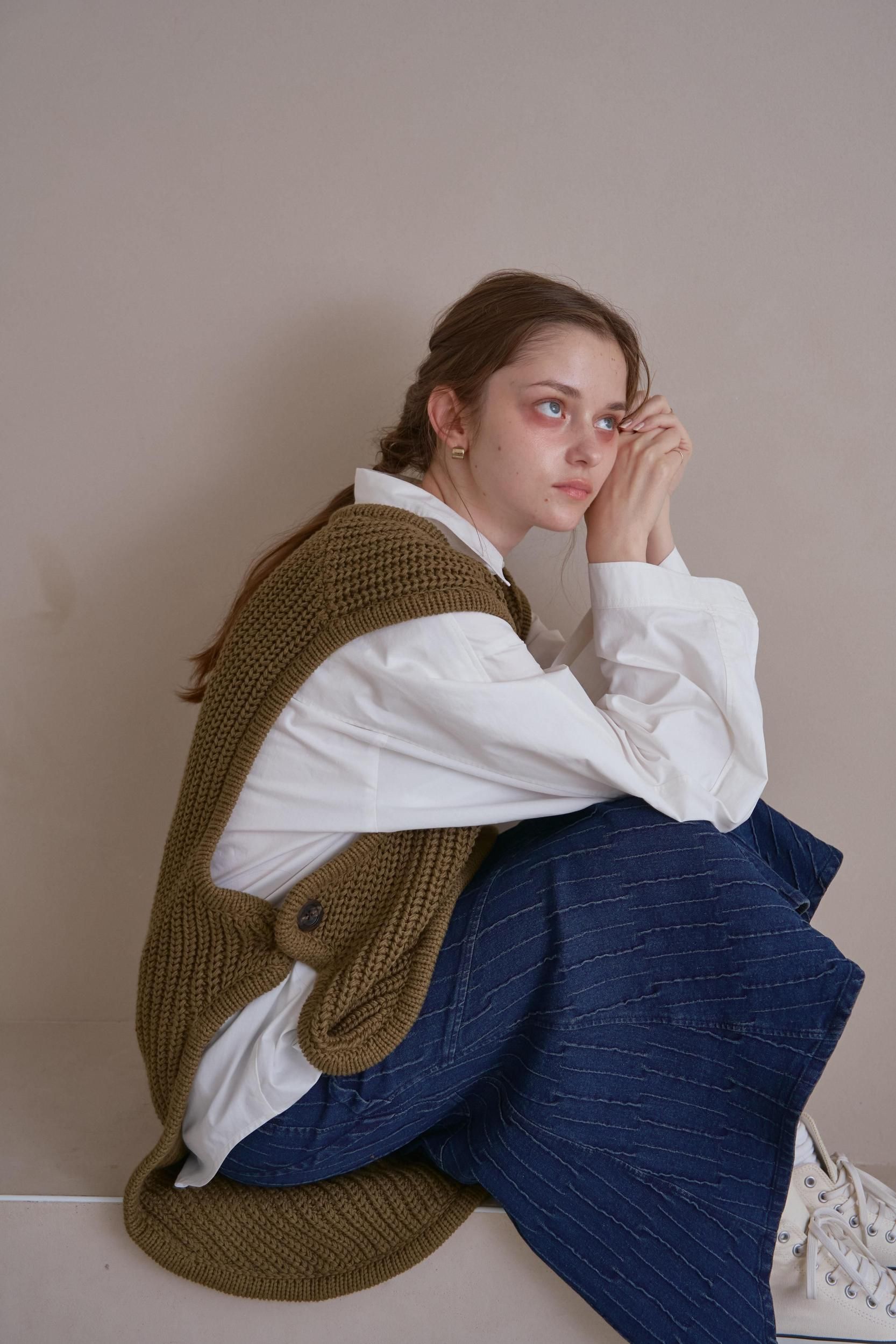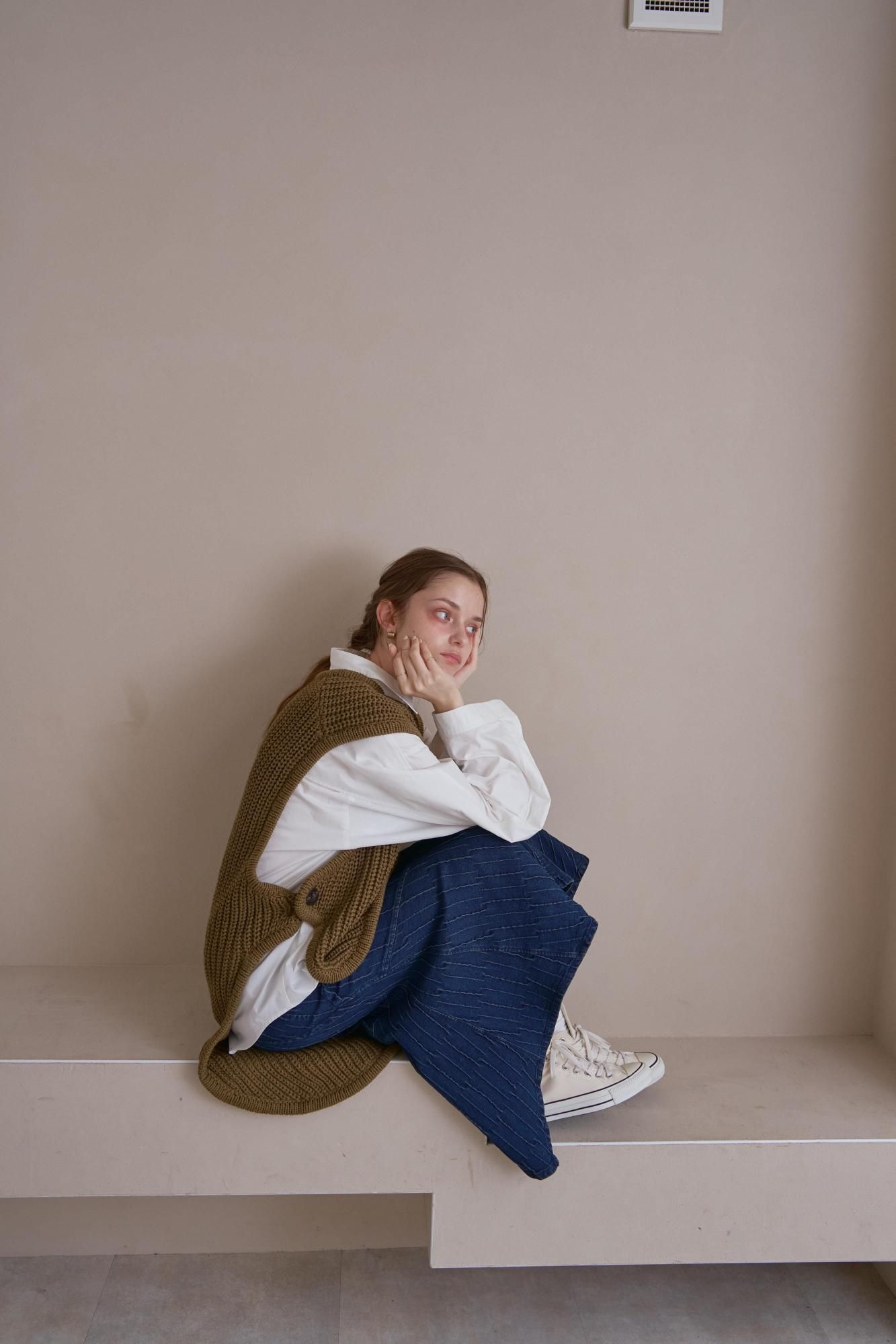 前後差をつけたラウンドヘムに、サイドはざっくり開けてタブで留める抜け感のあるデザイン。