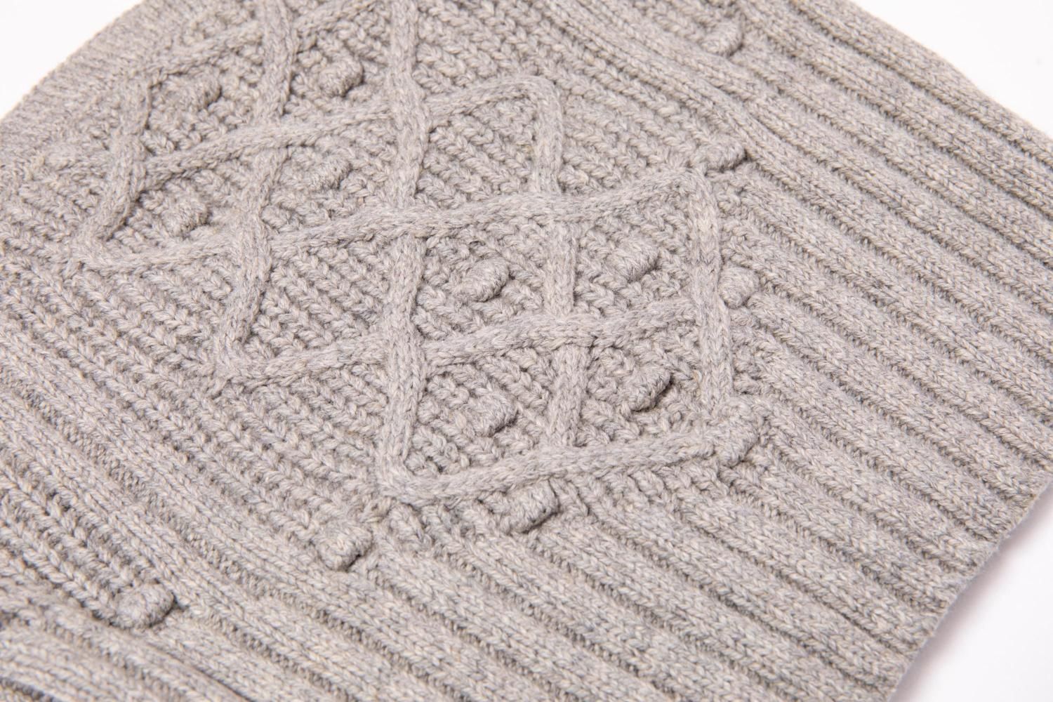 ケーブルとポップコーン編みを組み合わせた編み地がかわいいセット。