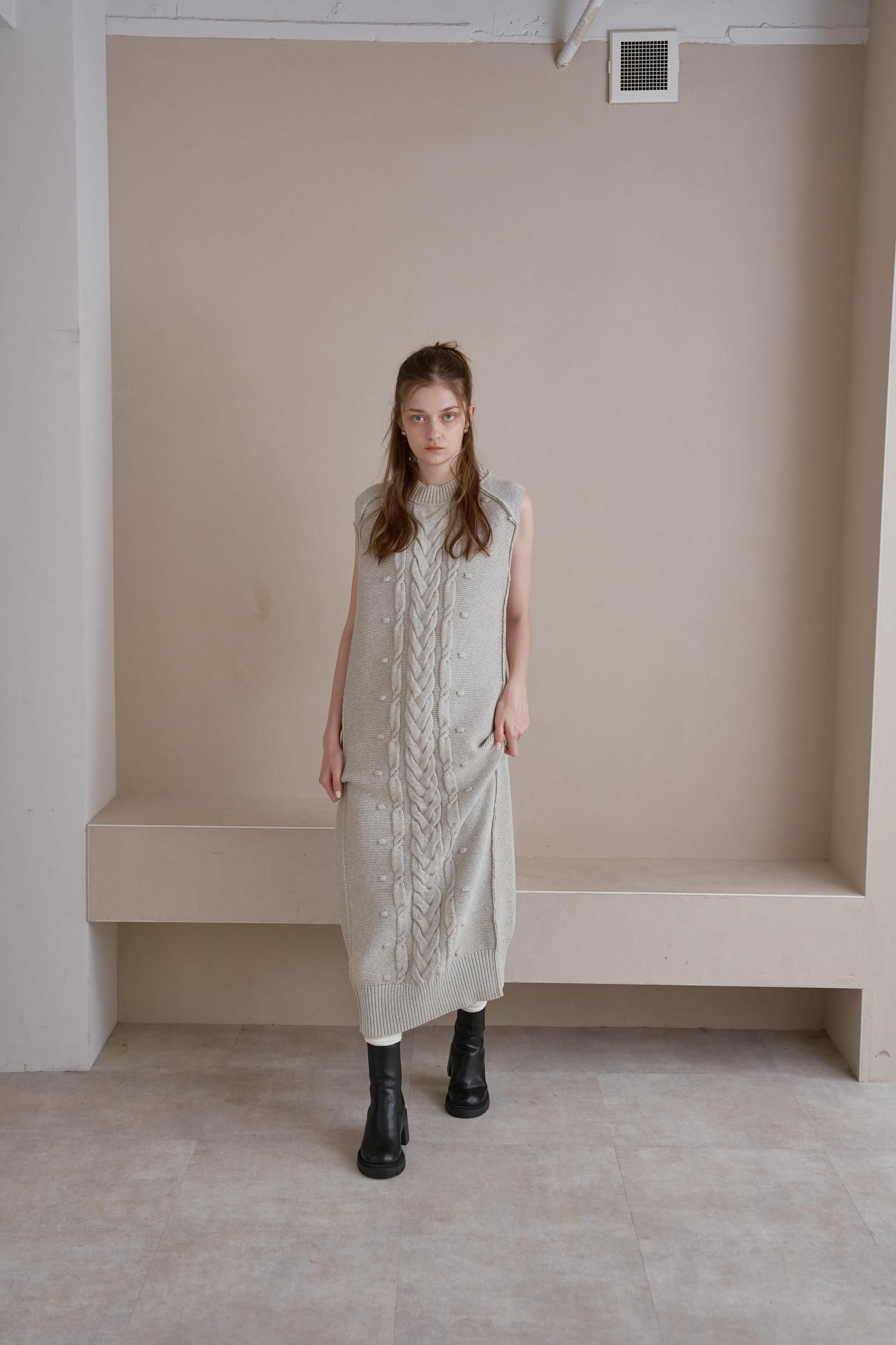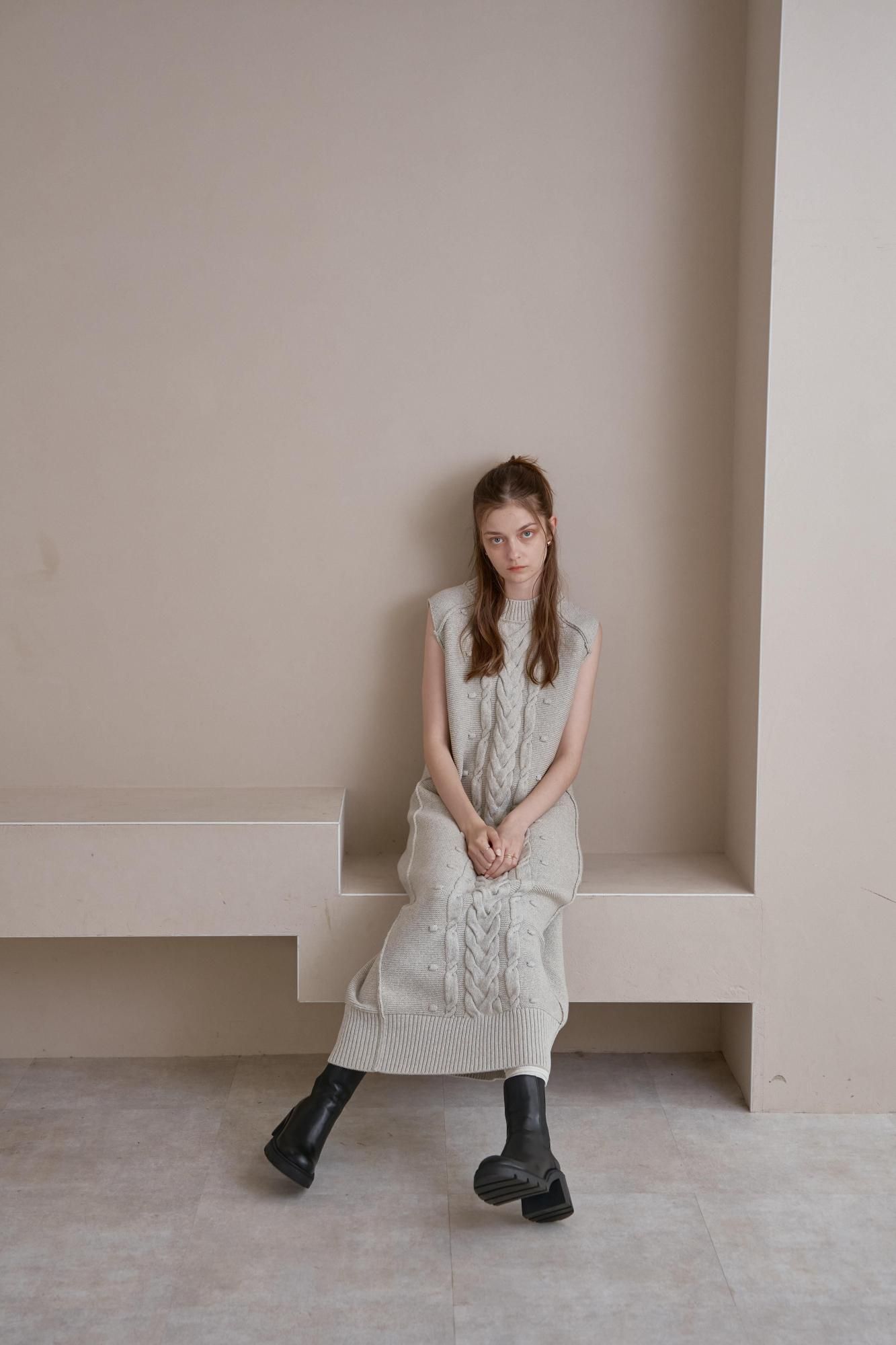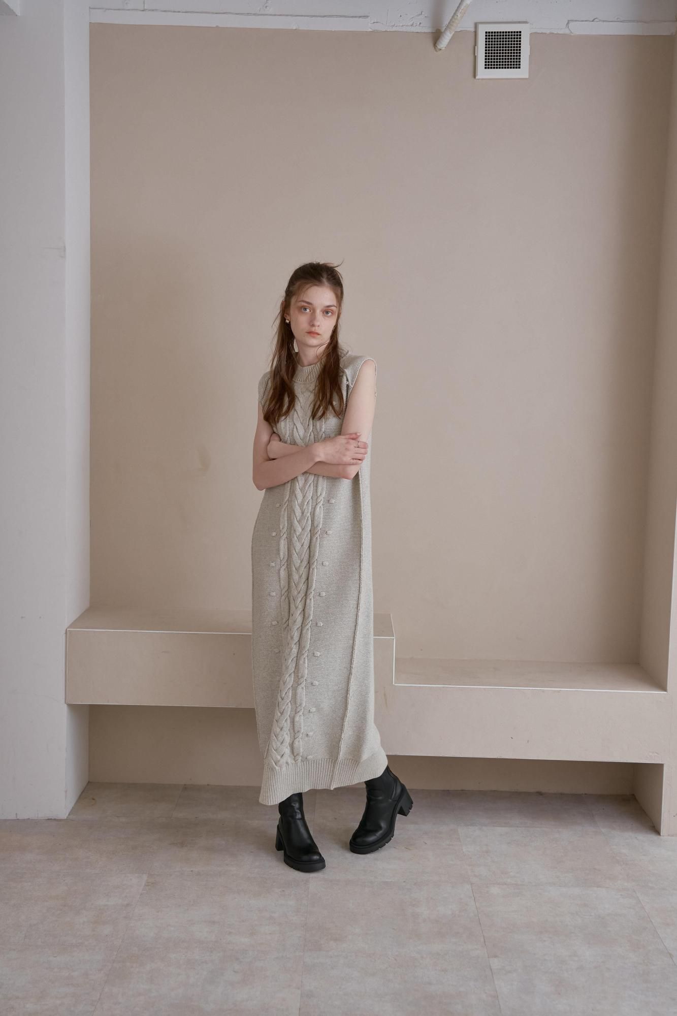 フロントにケーブル編みを施したニットワンピース。