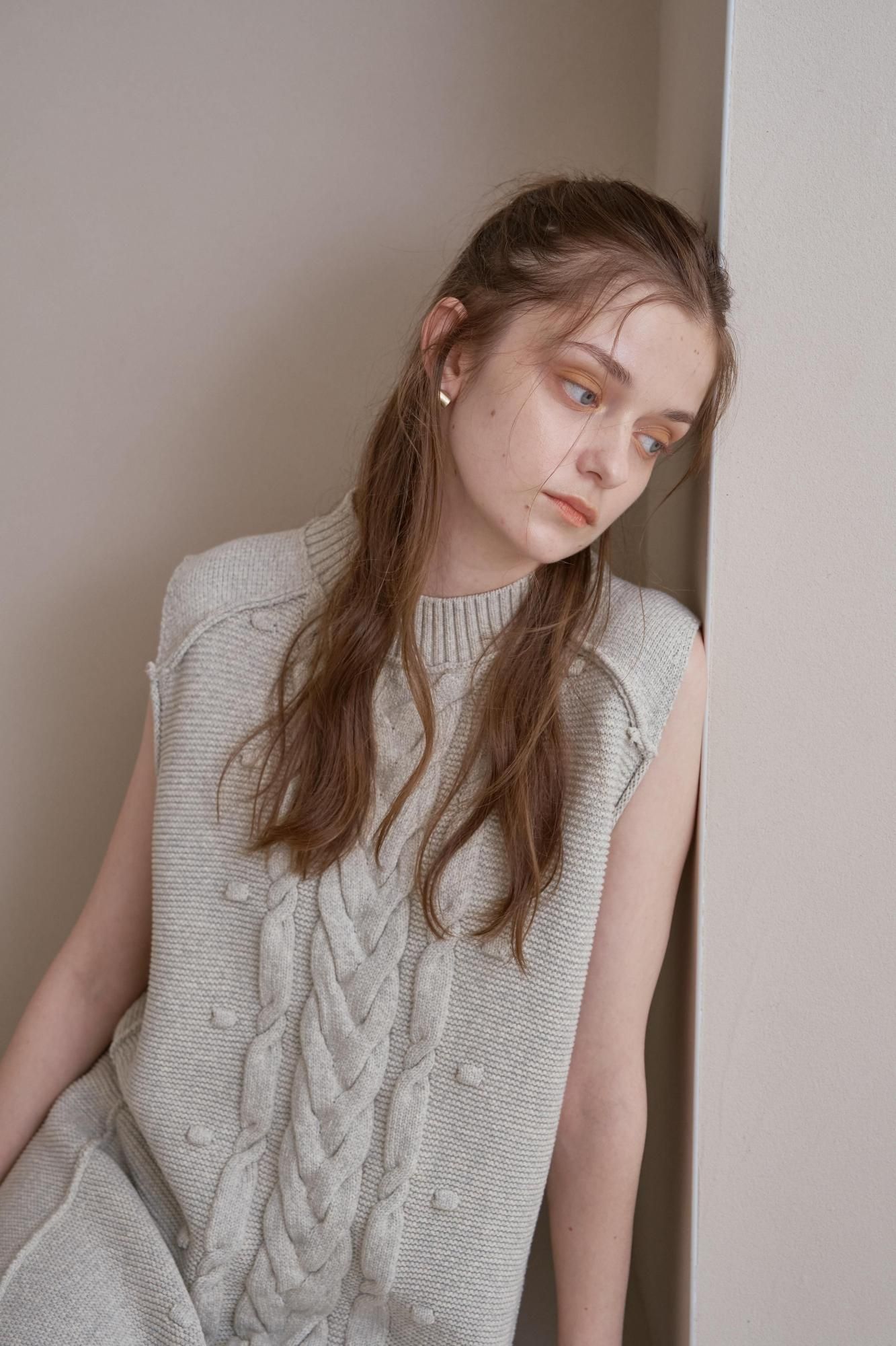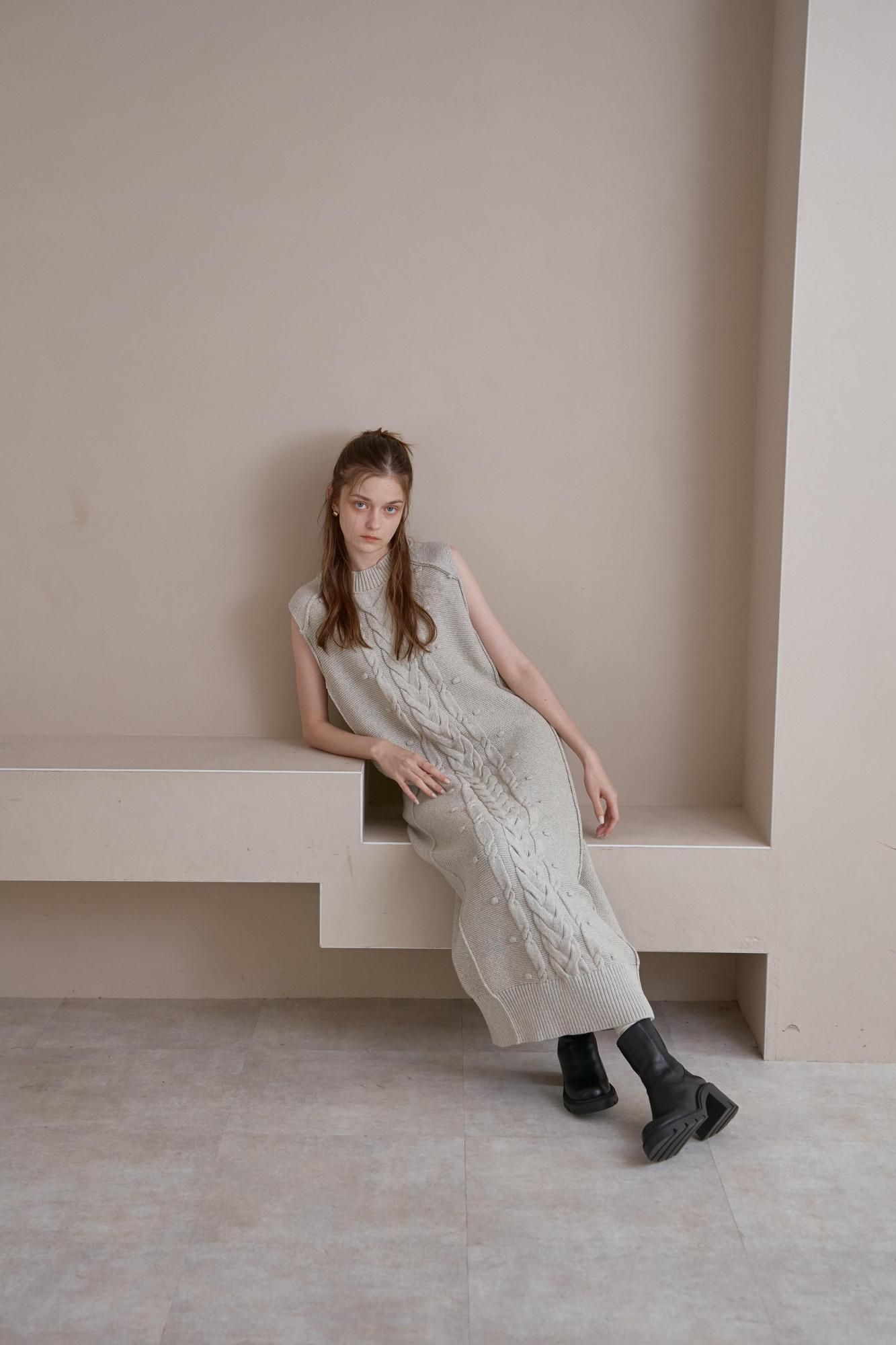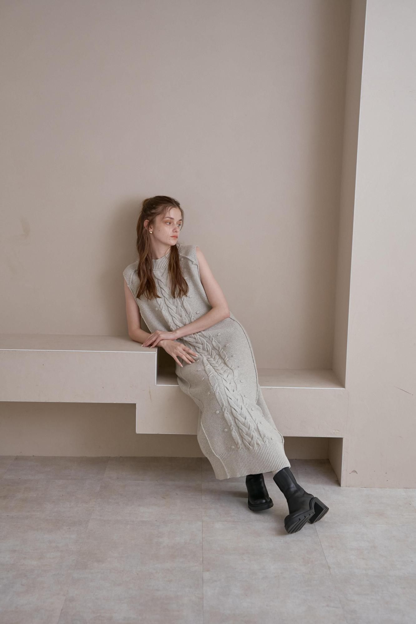 フロントにケーブル編みを施したニットワンピース。