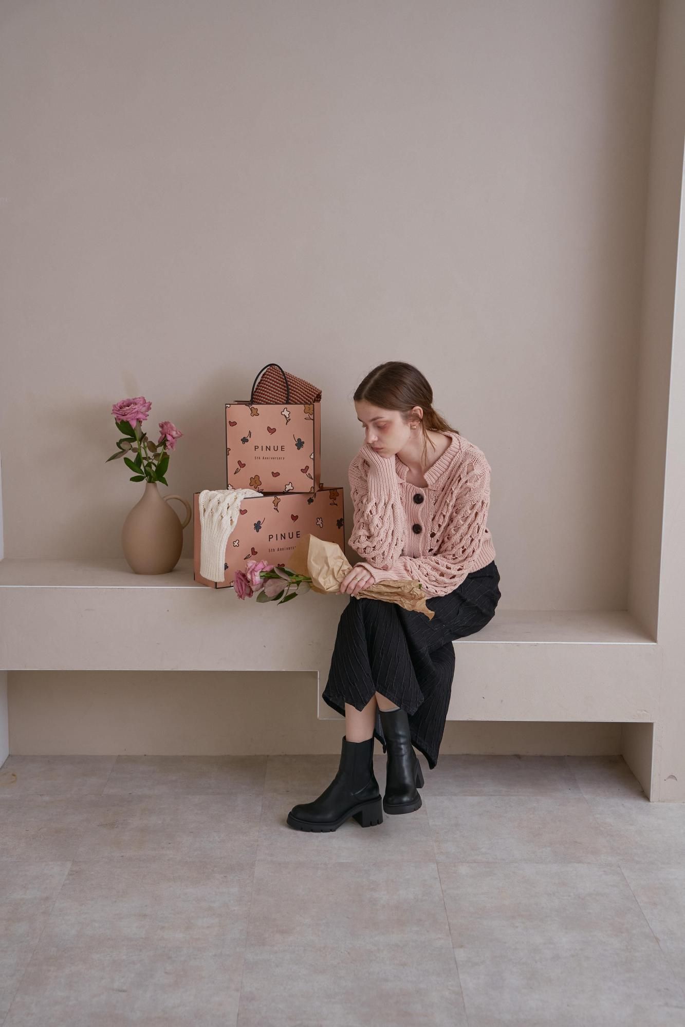 羽織としてだけでなく、ボタンを閉じてトップスとしての着用もおすすめです。