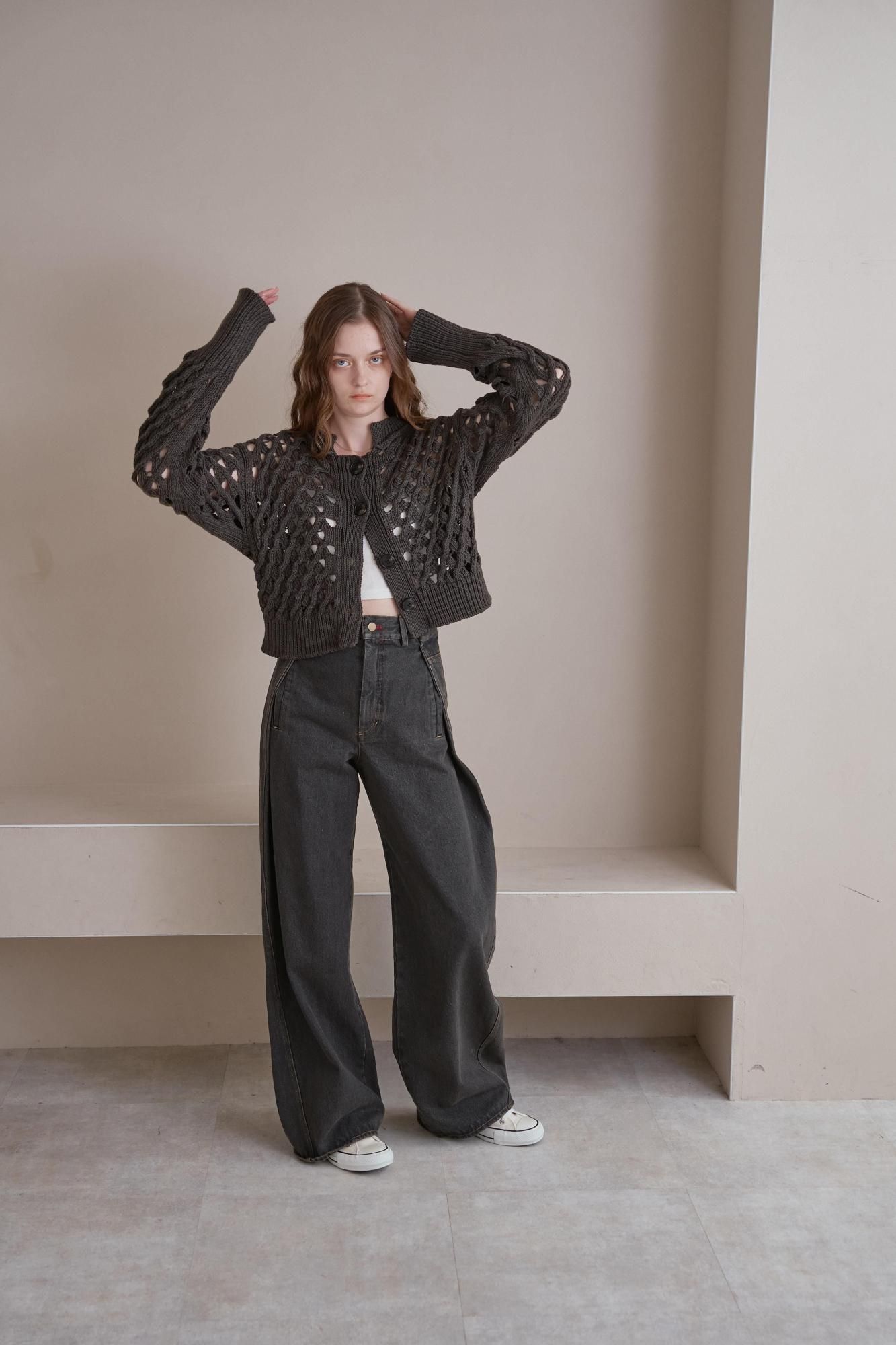 羽織としてだけでなく、ボタンを閉じてトップスとしての着用もおすすめです。