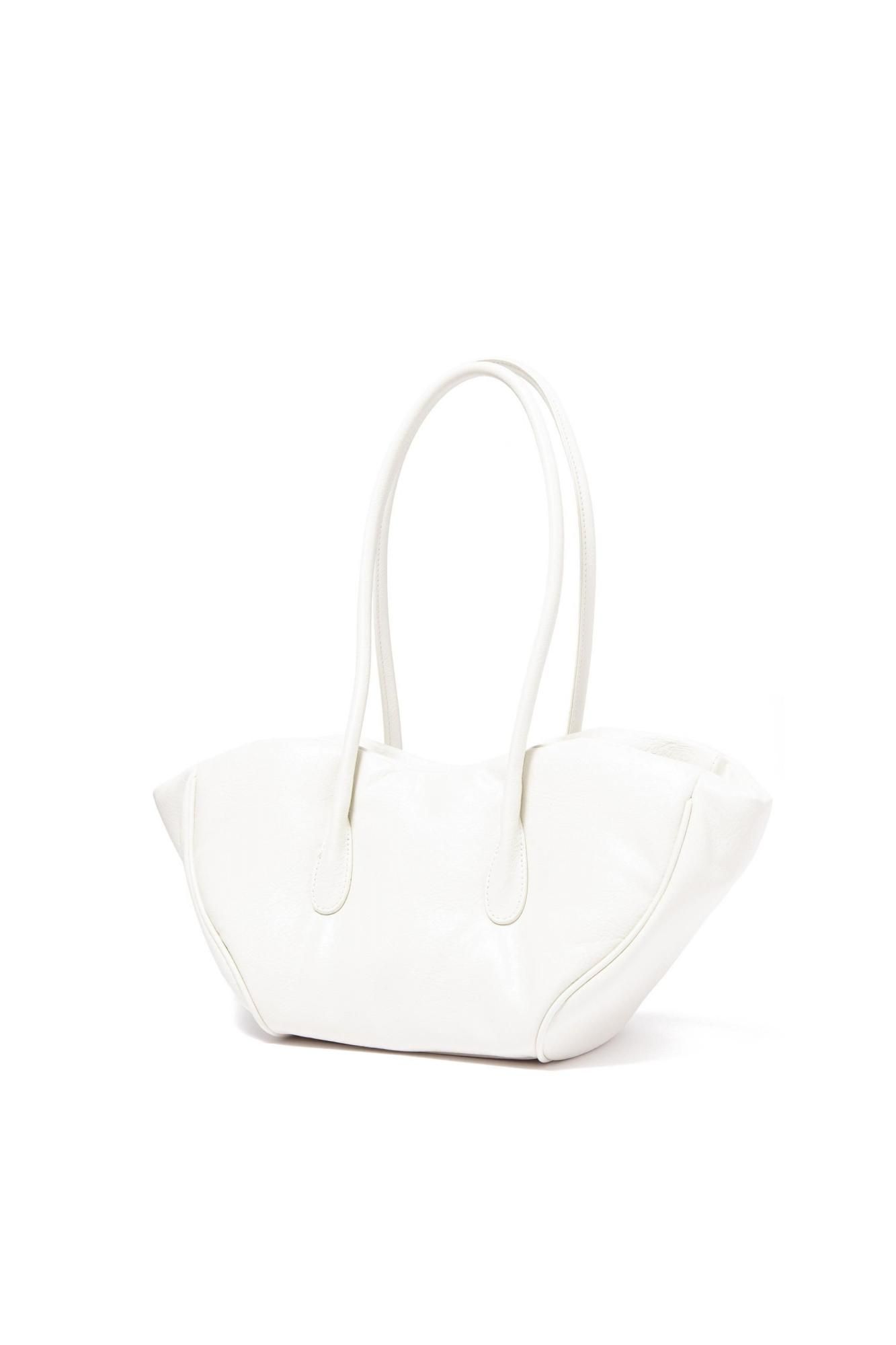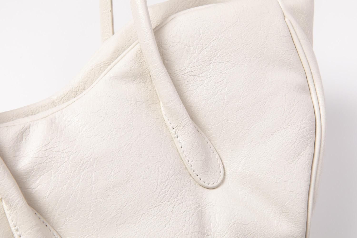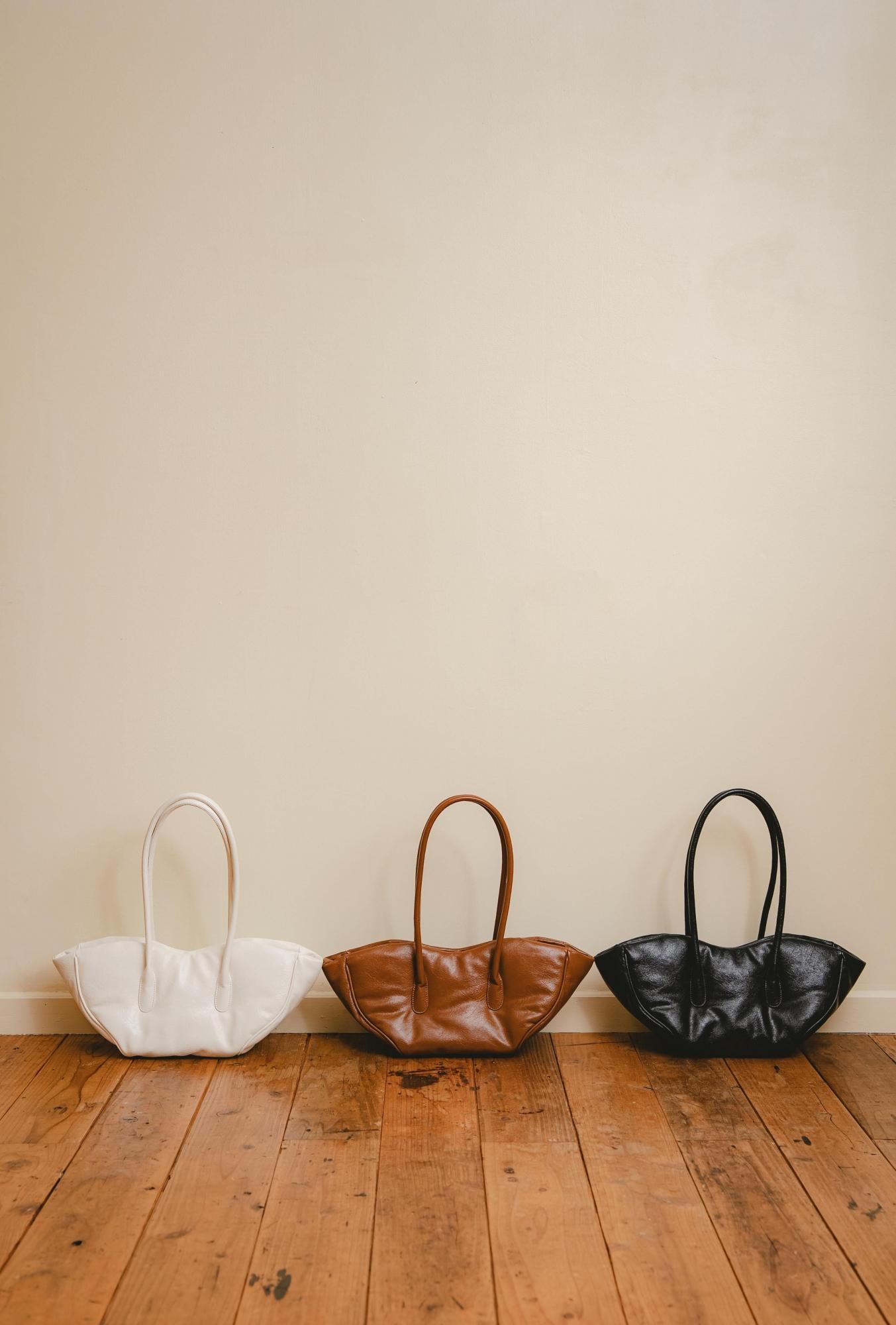 ウェーブさせたトップに丸みのあるマチで独特のフォルムに仕上げたバッグ。