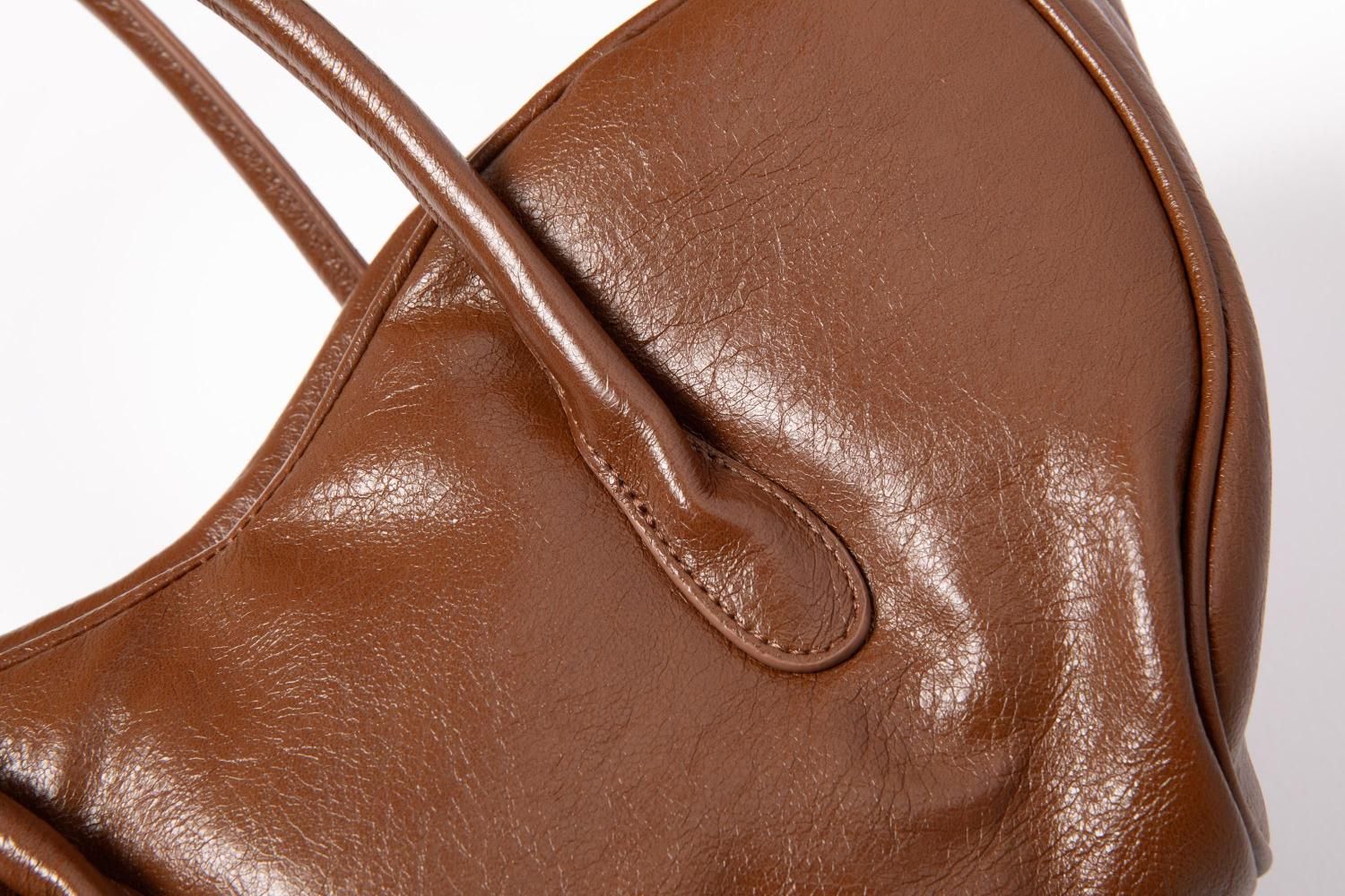 ウェーブさせたトップに丸みのあるマチで独特のフォルムに仕上げたバッグ。