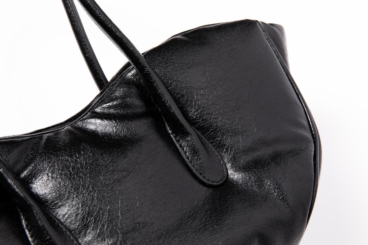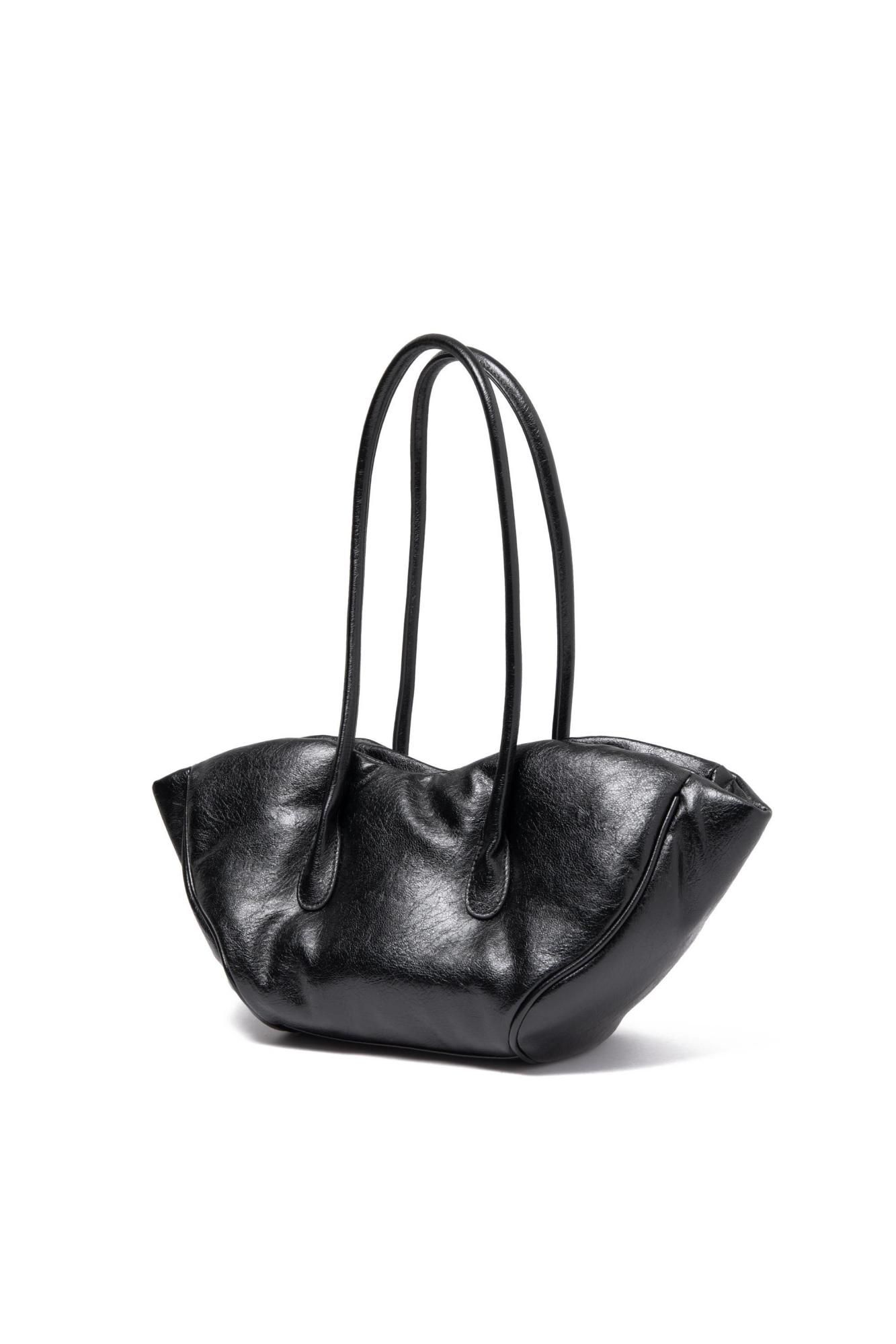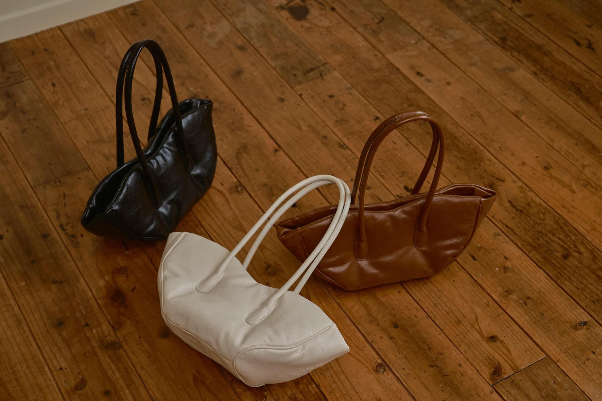 ウェーブさせたトップに丸みのあるマチで独特のフォルムに仕上げたバッグ。