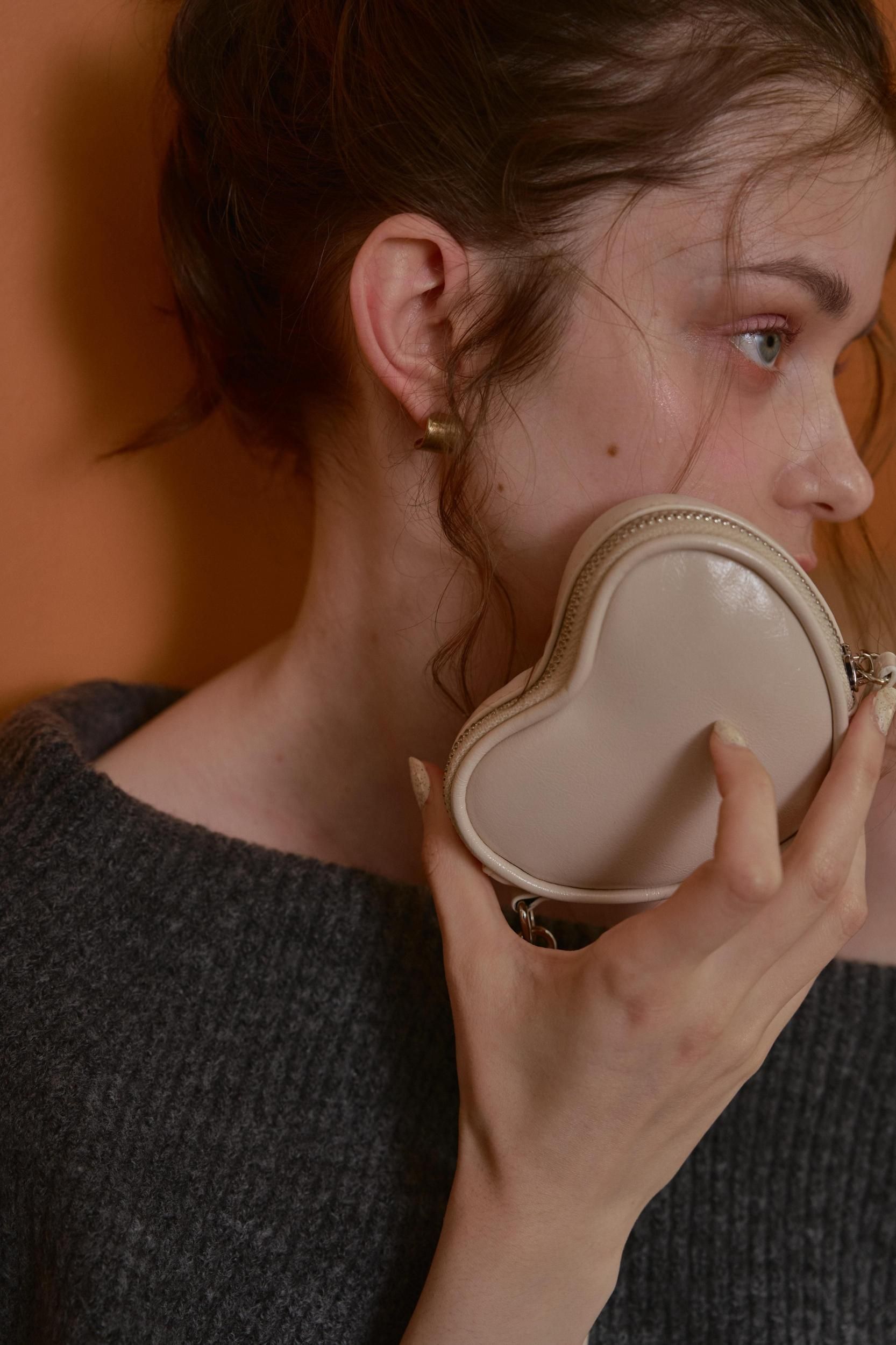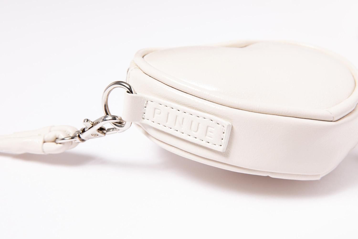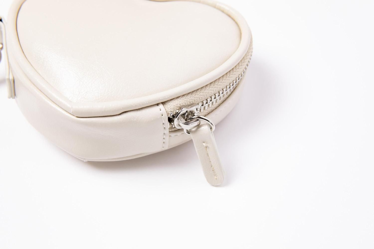 コロンとした丸みのあるフォルムが可愛いハート柄のポーチ。