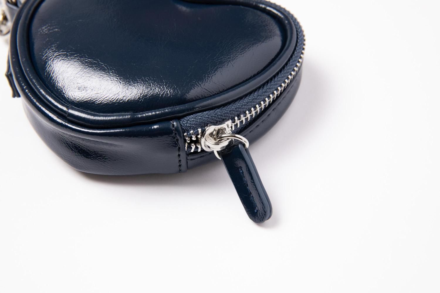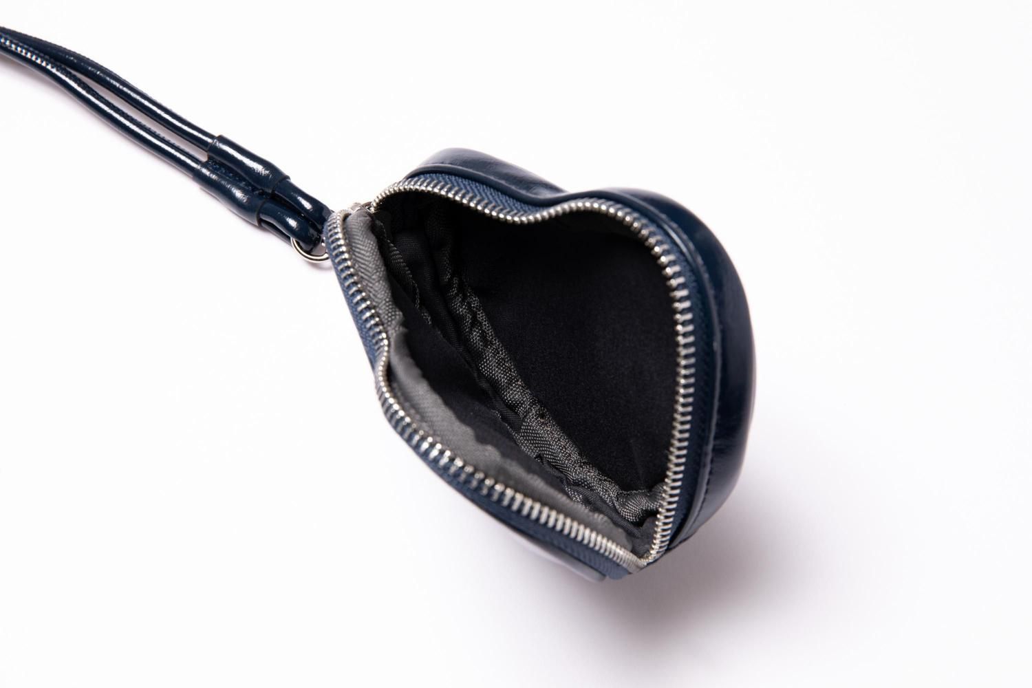 コロンとした丸みのあるフォルムが可愛いハート柄のポーチ。