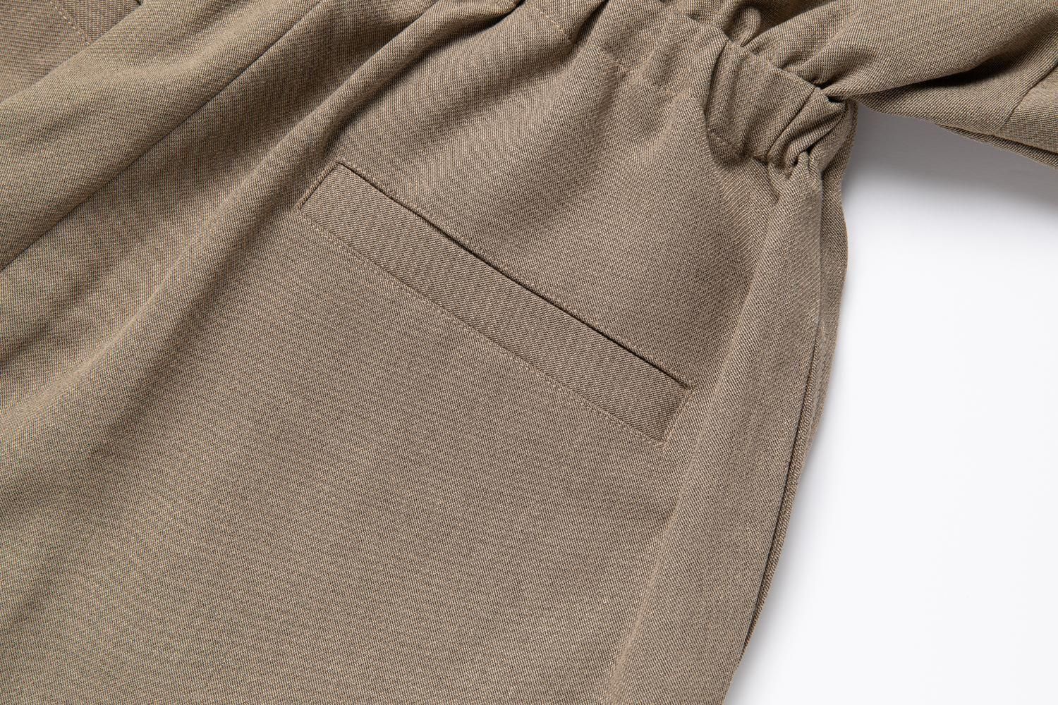 ショート丈のパンツにボリュームのある身頃がブラウジングされるシルエットがかわいい1枚です。