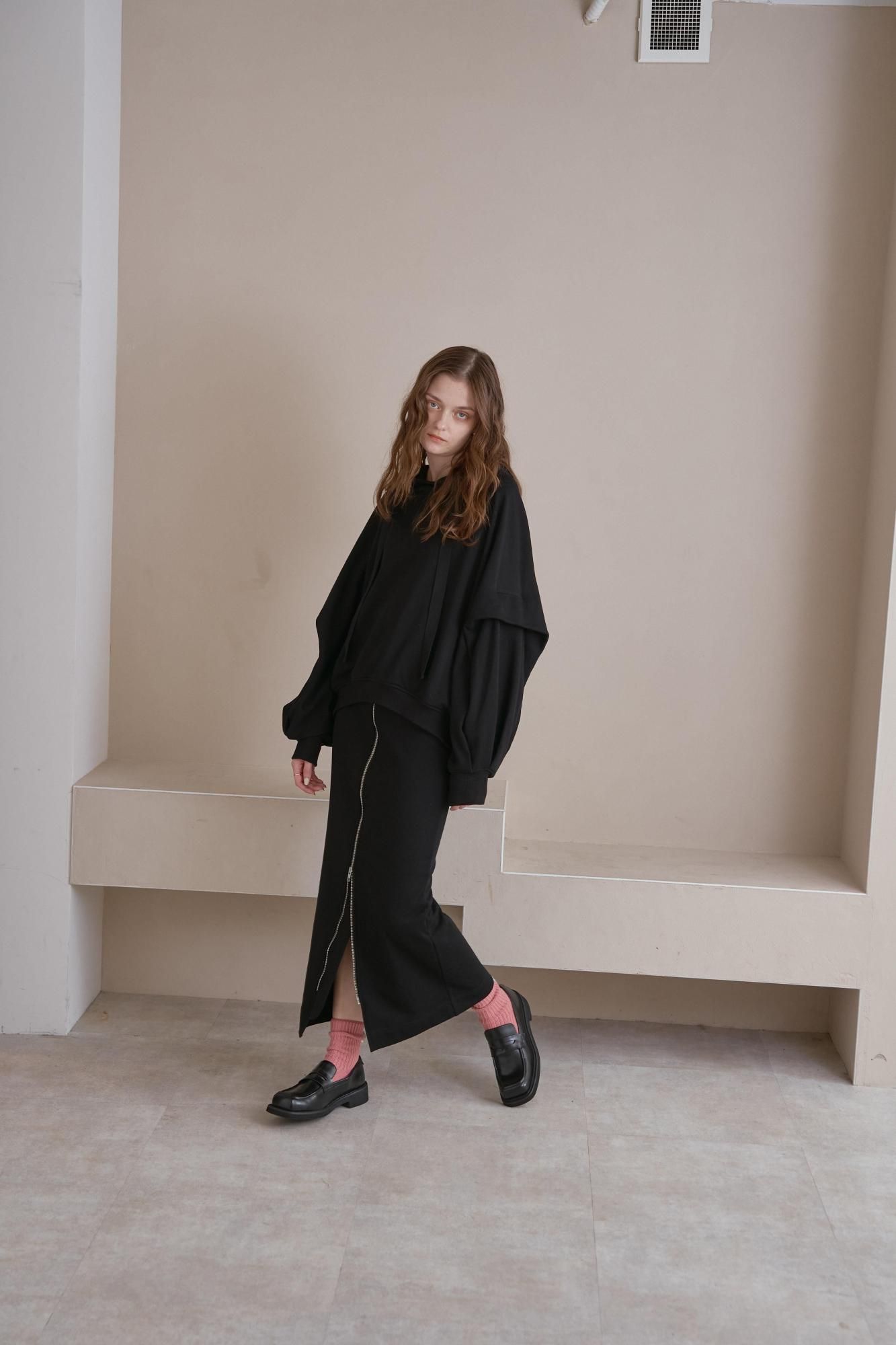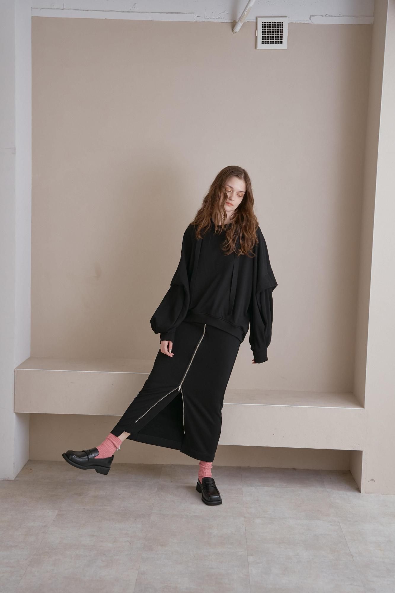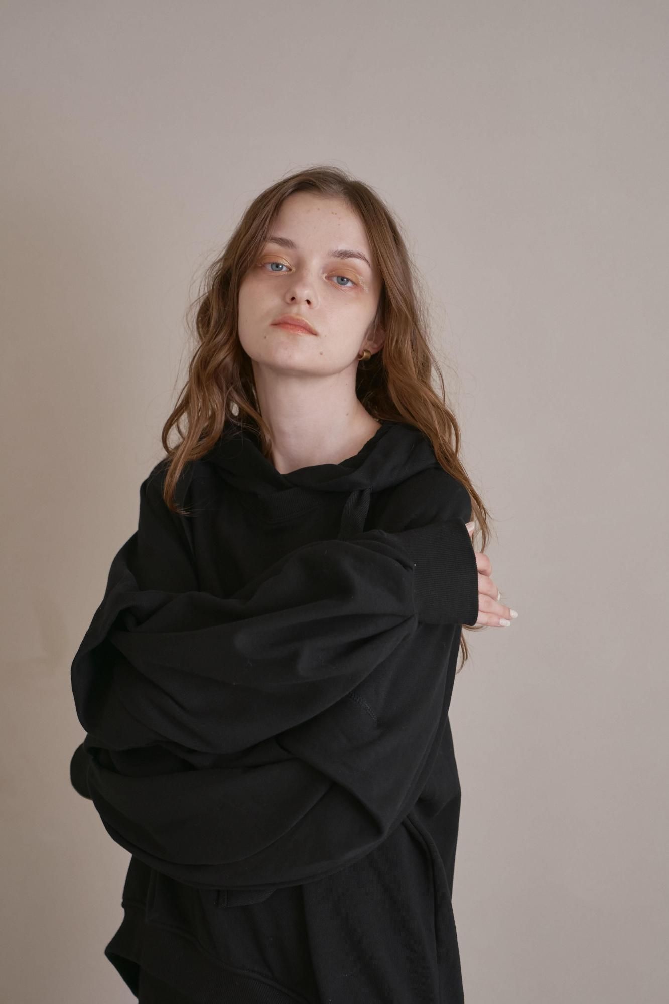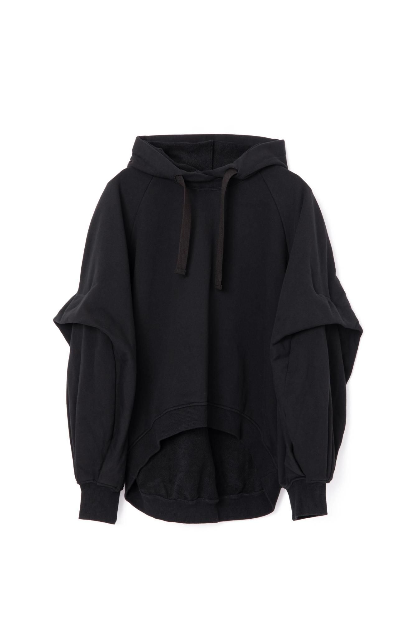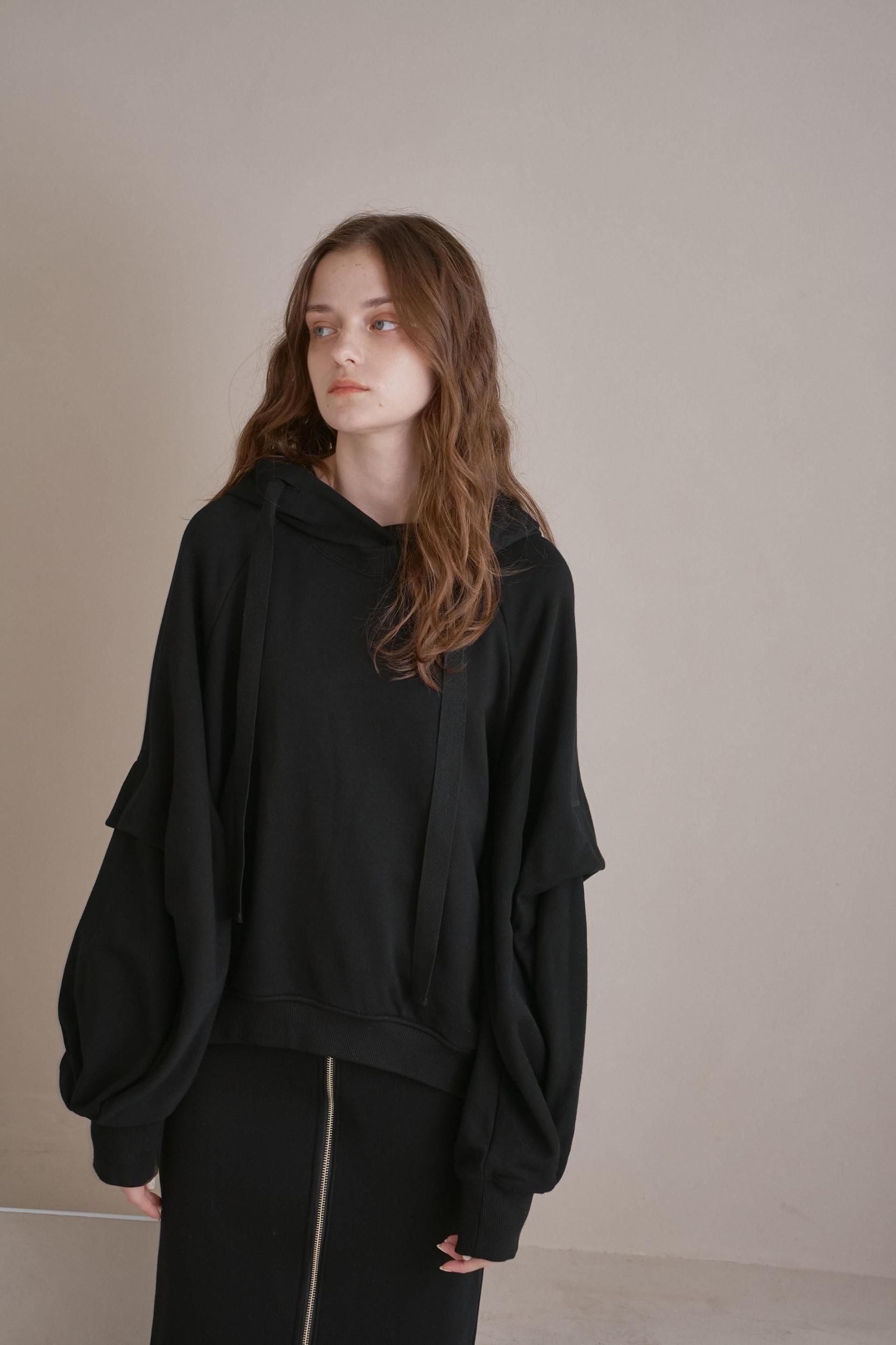 タックをとったボリューミーな袖が特徴的な裏毛パーカー。