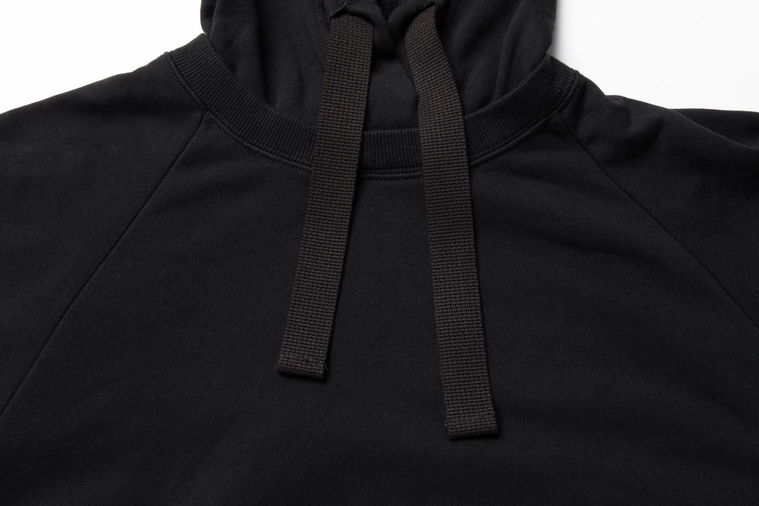 フード紐にはしっかりと厚みのある幅広テープを使用しました。