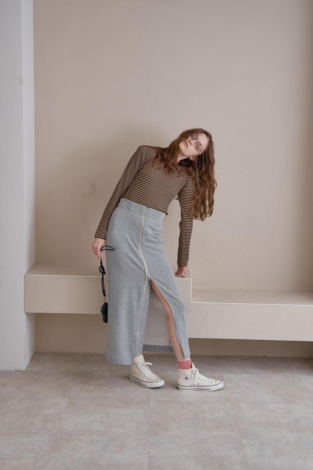 ジップは逆開になっており、裾を開けてスリットにしていただけます。