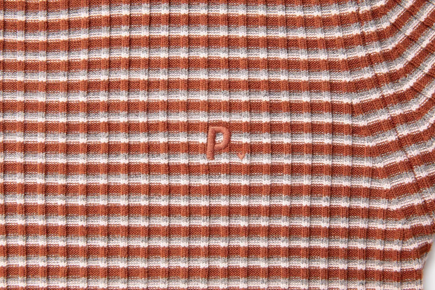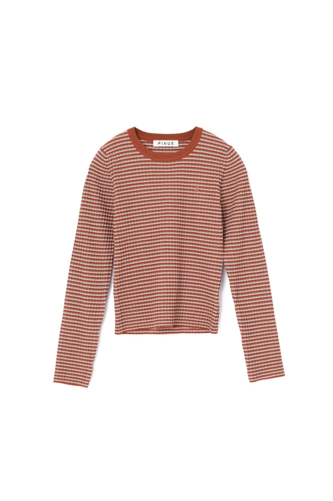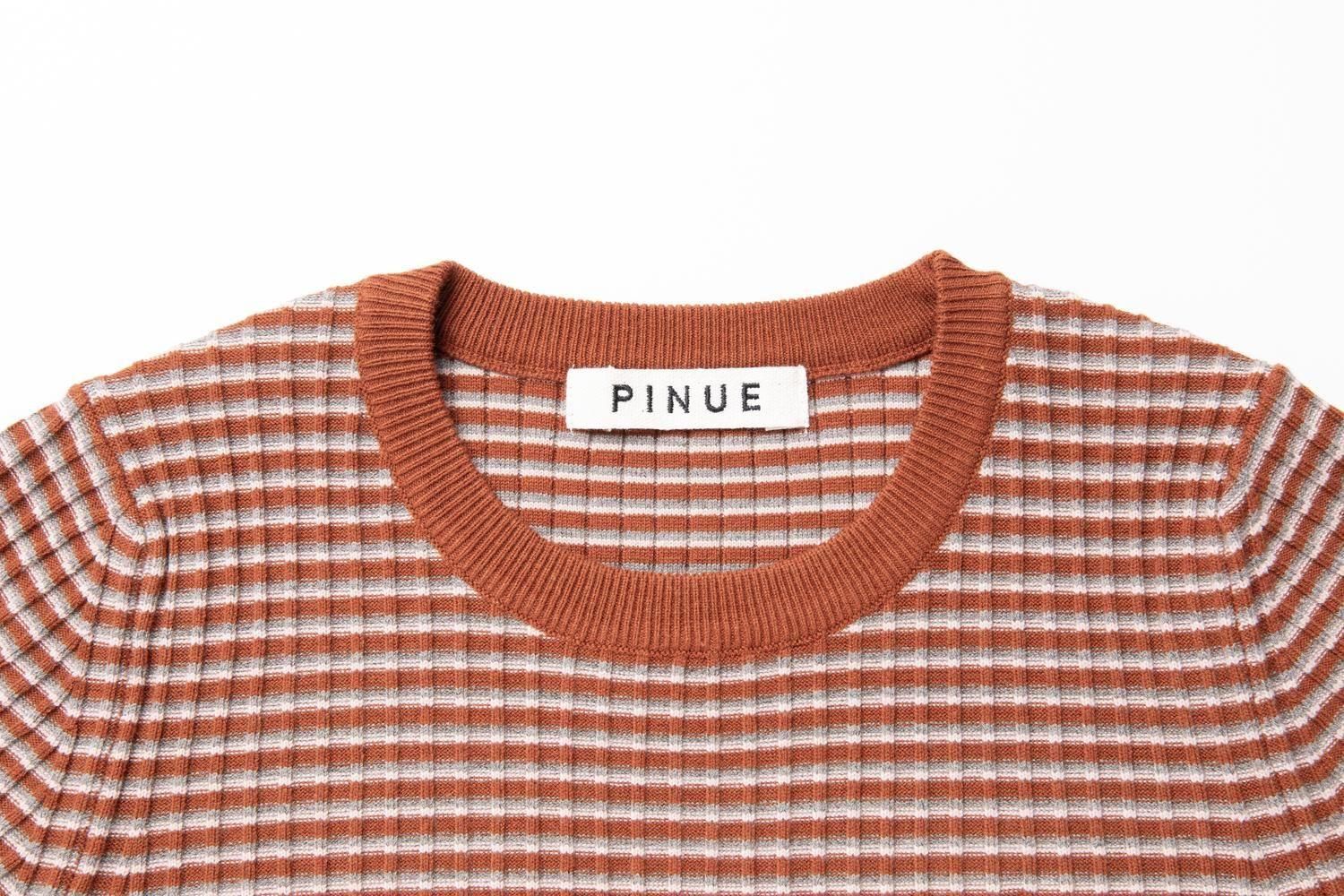 PINUEらしいマルチカラーのボーダーニットトップス。