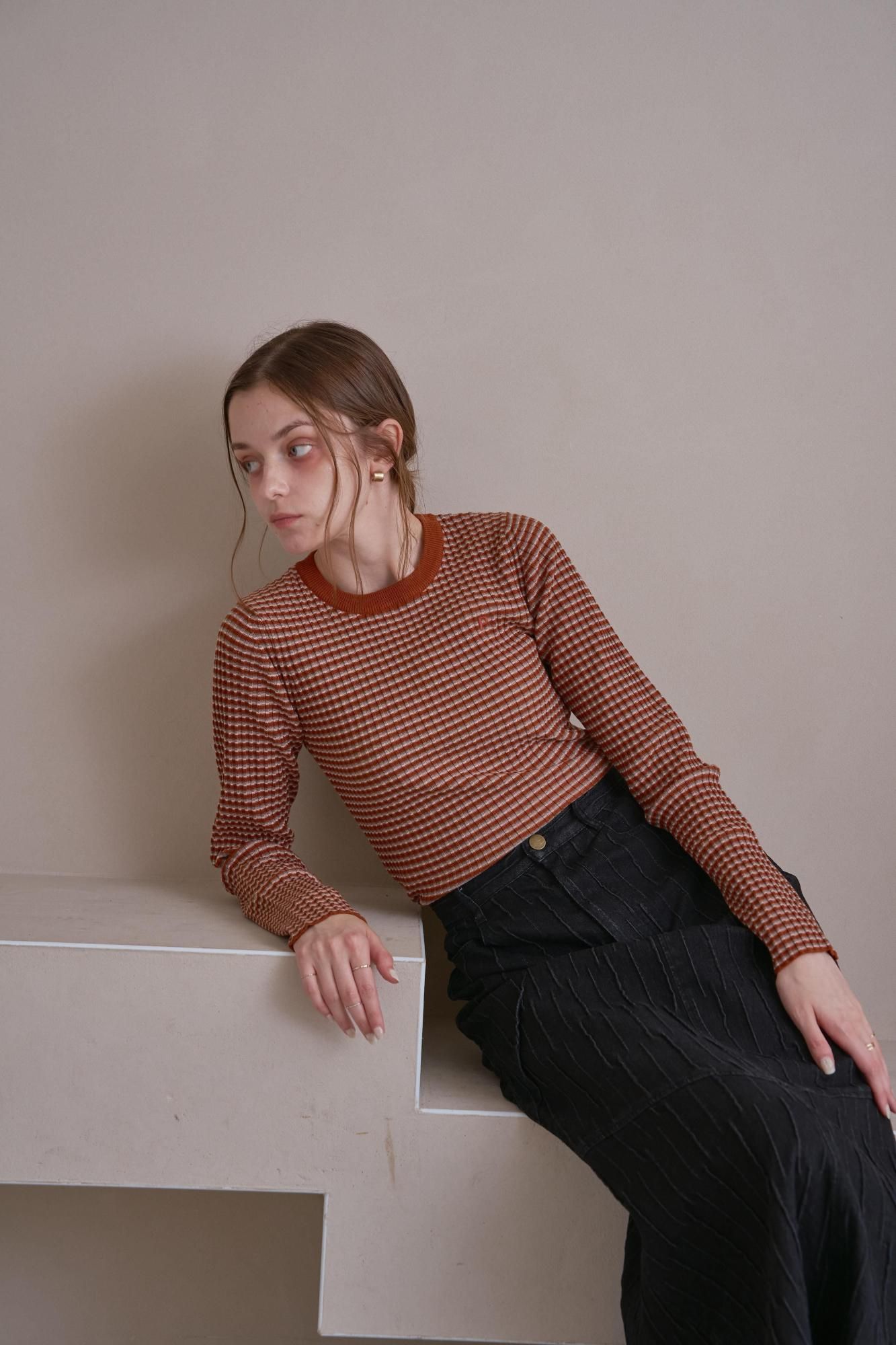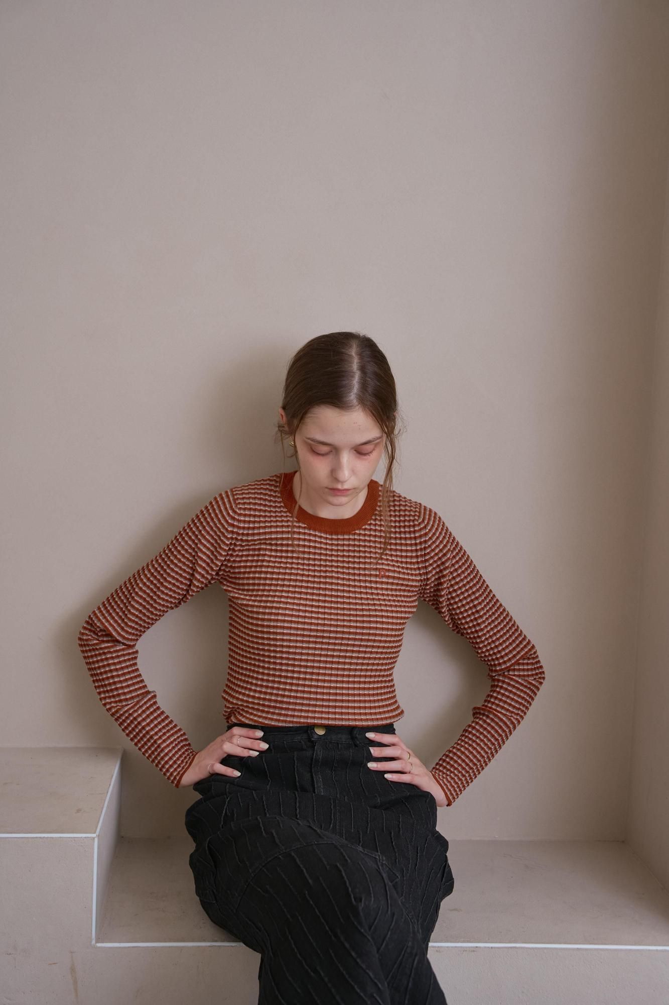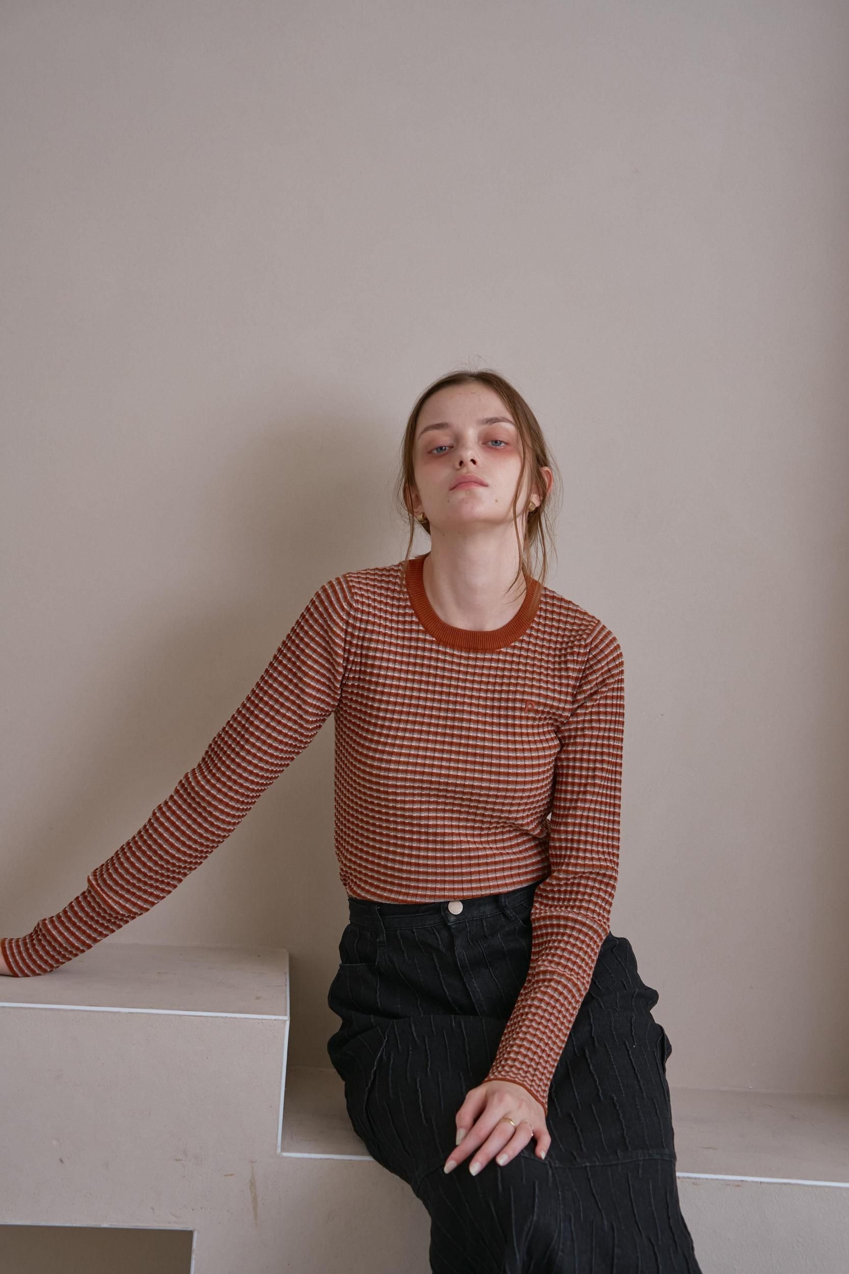 PINUEらしいマルチカラーのボーダーニットトップス。