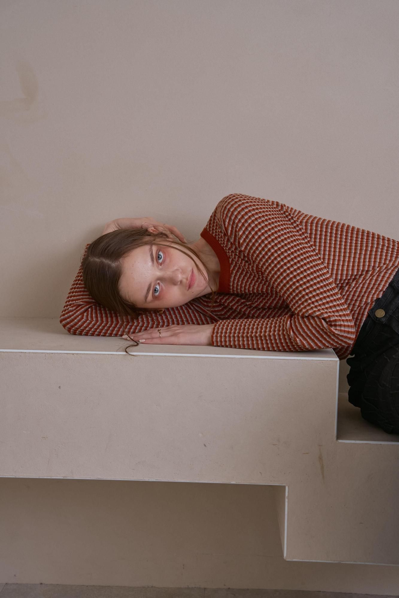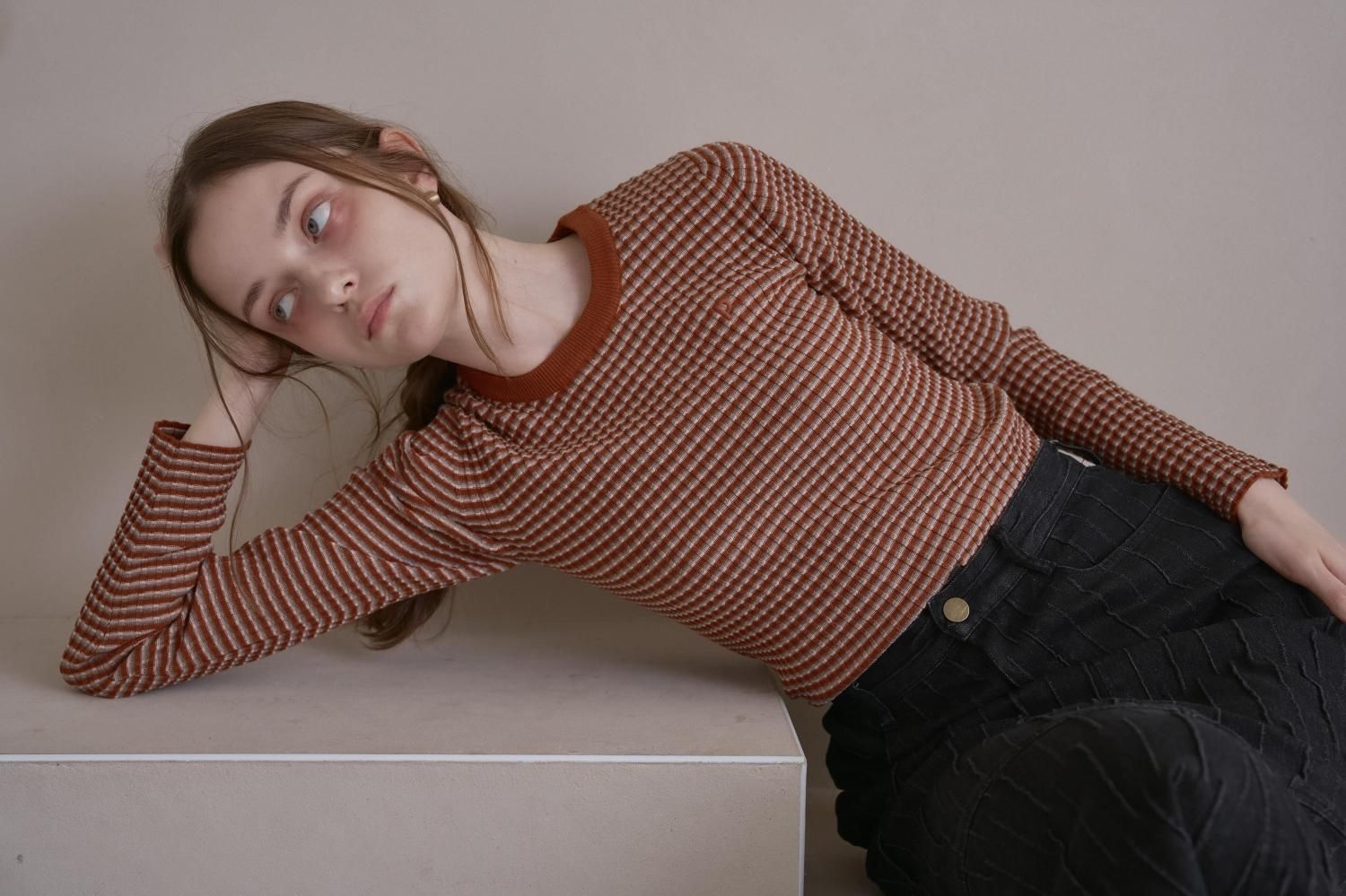 少しゆとりあるシルエットに程よい厚みのリブで体のラインを拾いすぎずに着ていただけます。