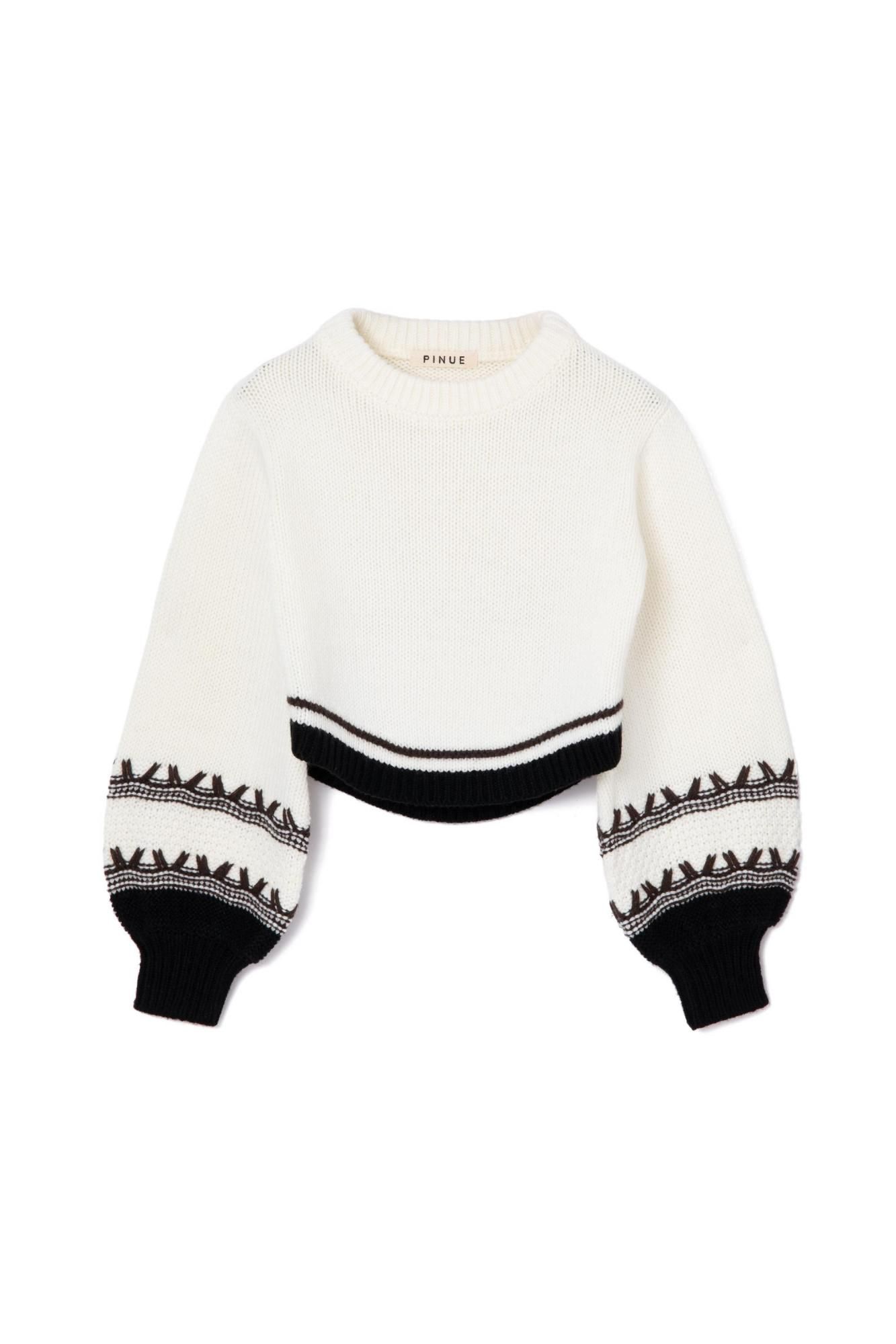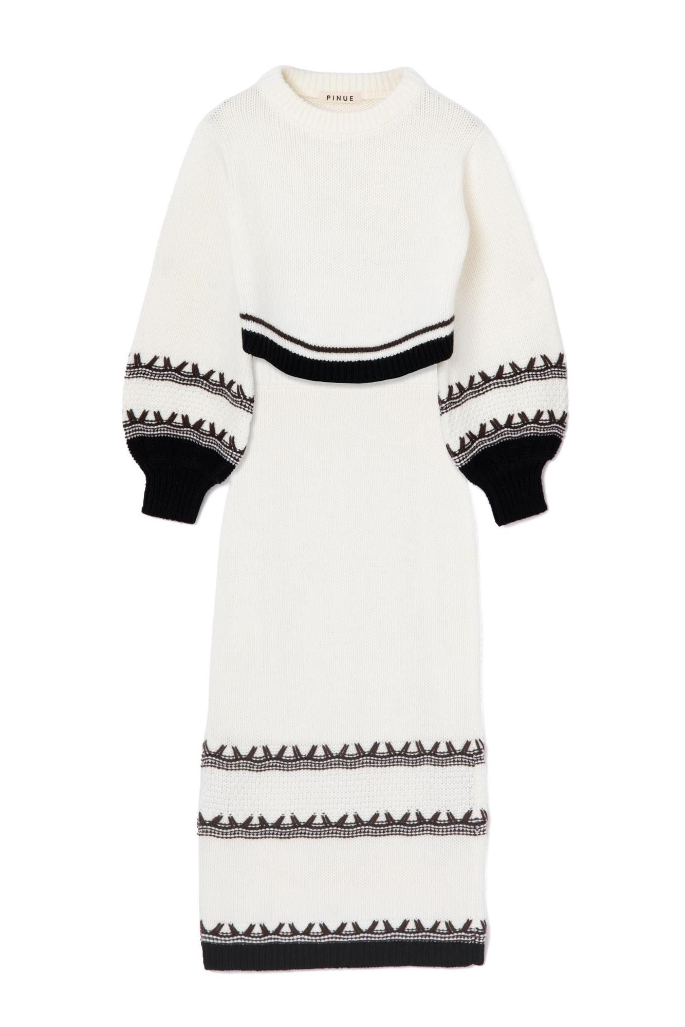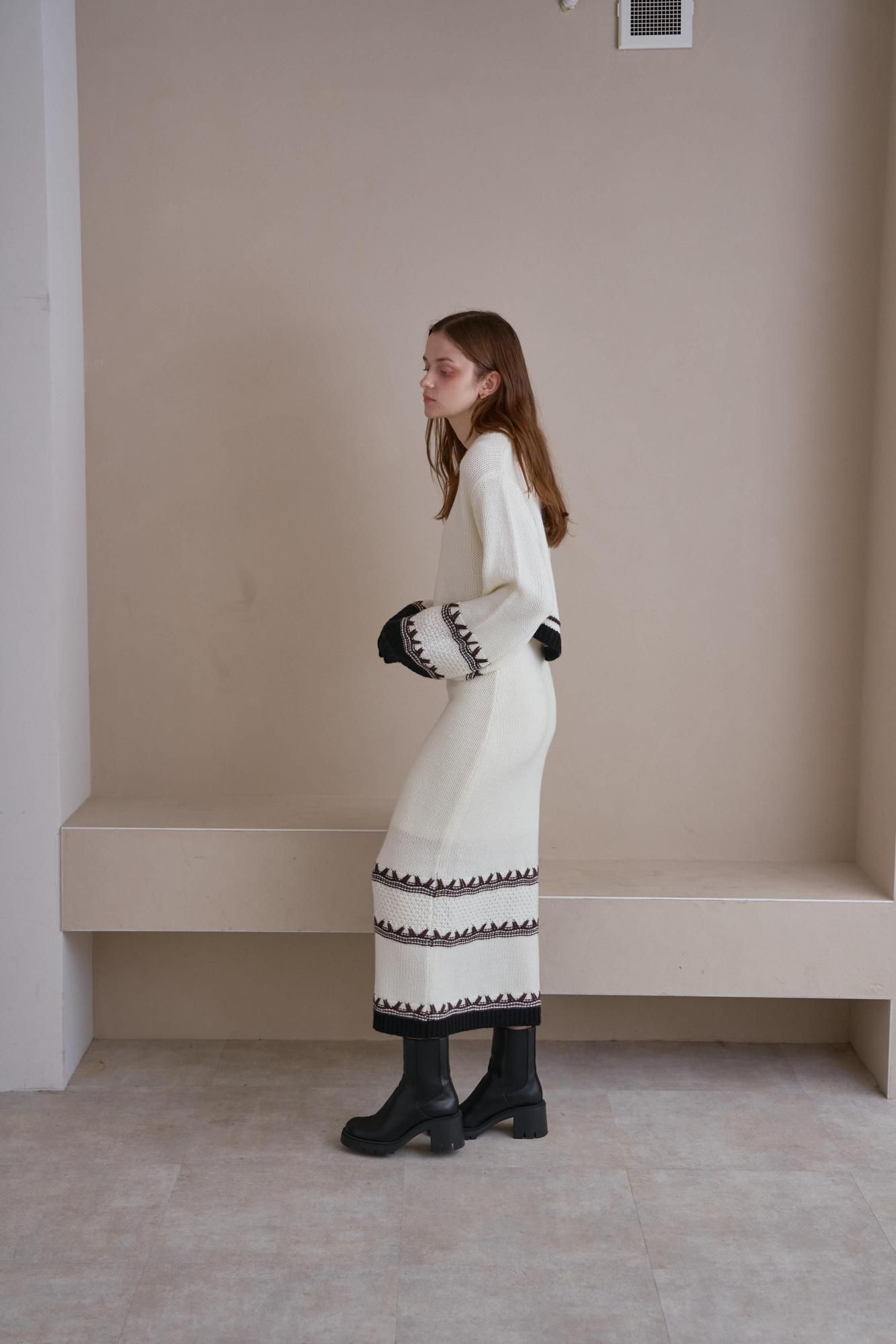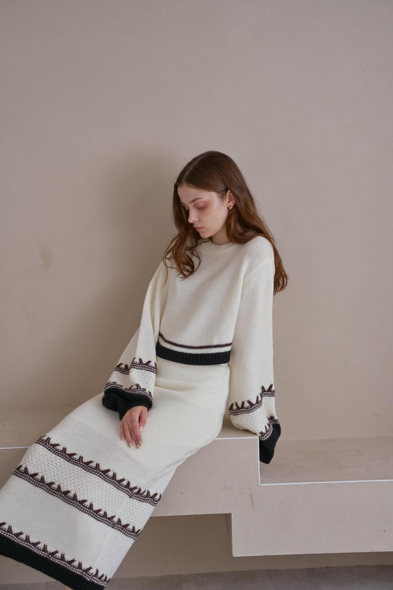 袖口と裾のステッチ柄が特徴的なニットセットアップ。