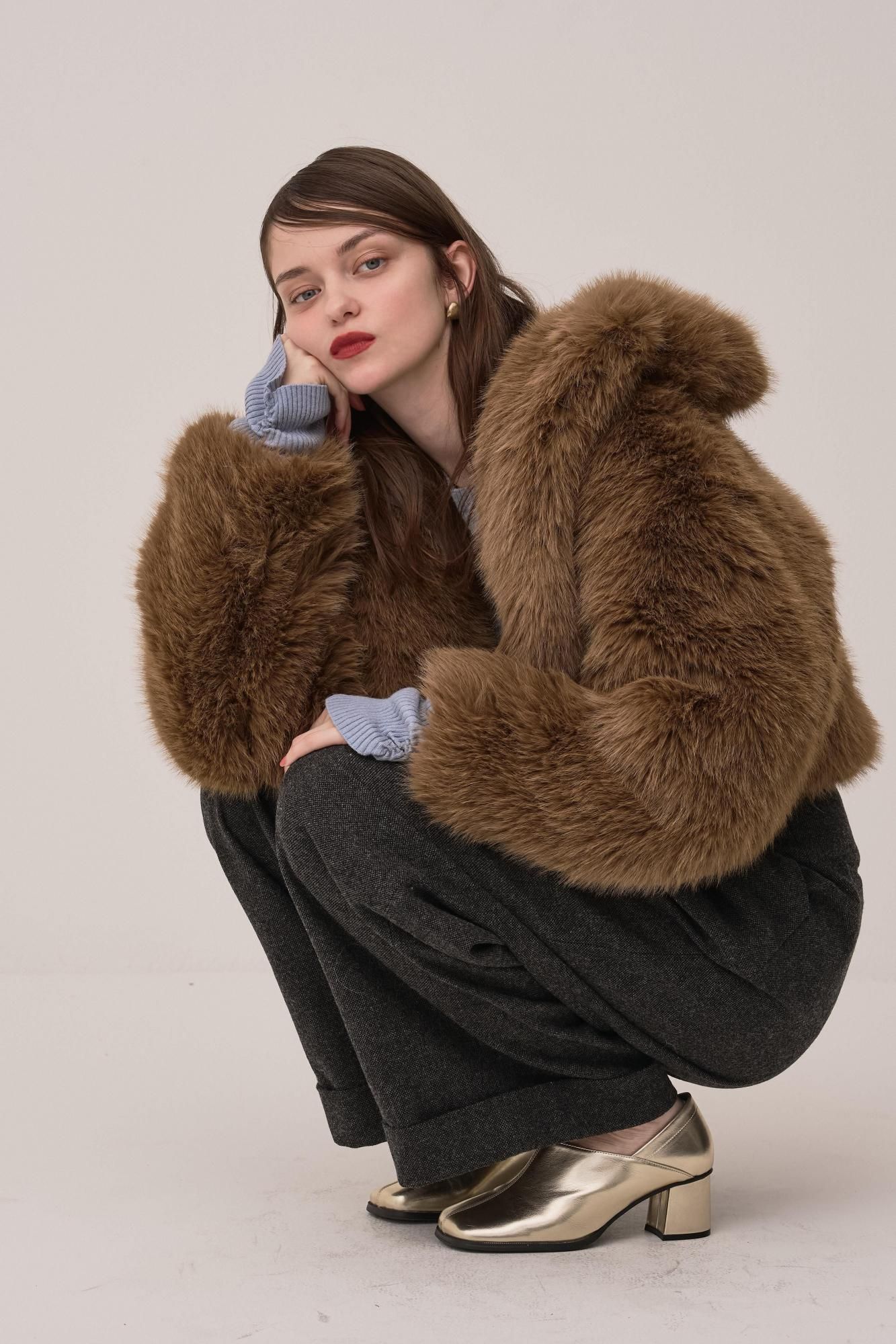 ボリューミーな毛足のエコファー×短めの丈感バランスがかわいい1枚。