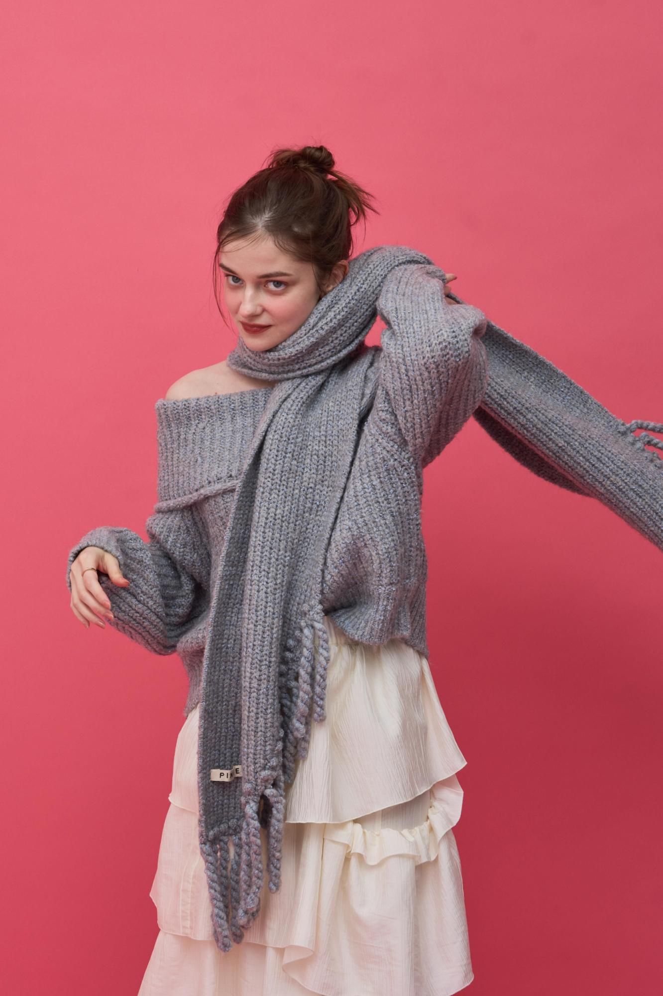 同素材のマフラーと合わせたスタイリングもおすすめです。