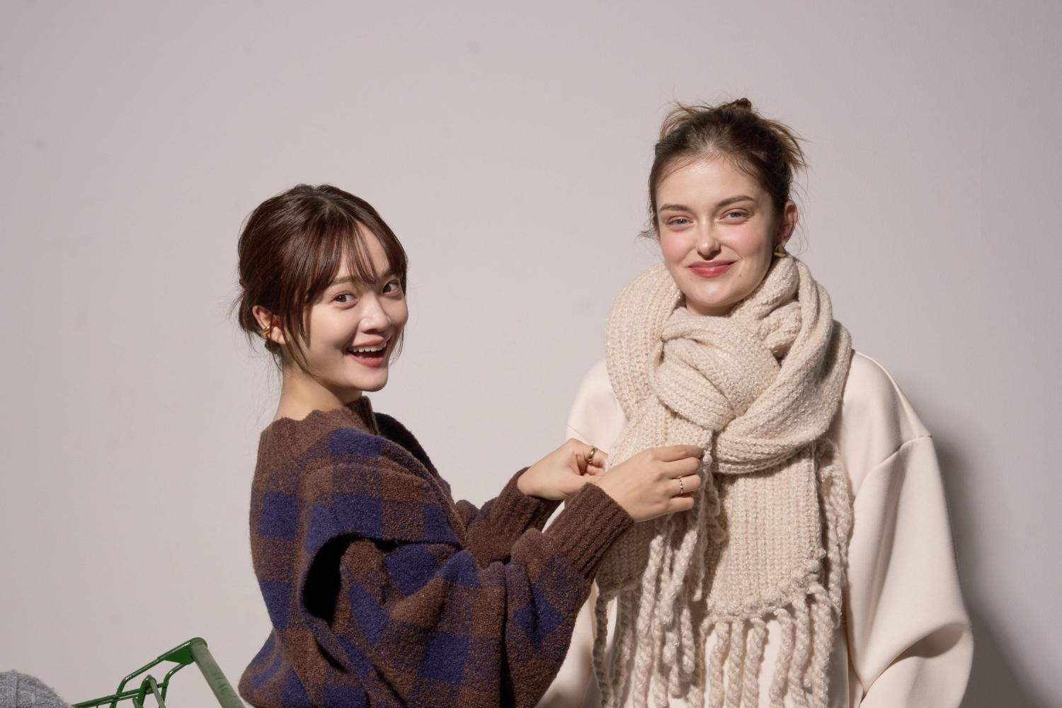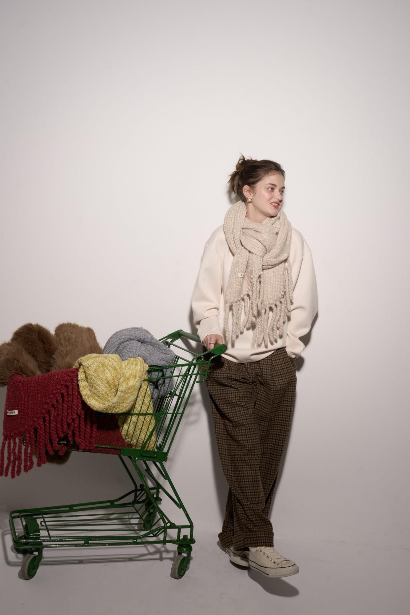 2種の糸をMIXさせて編み立てたニットマフラー。